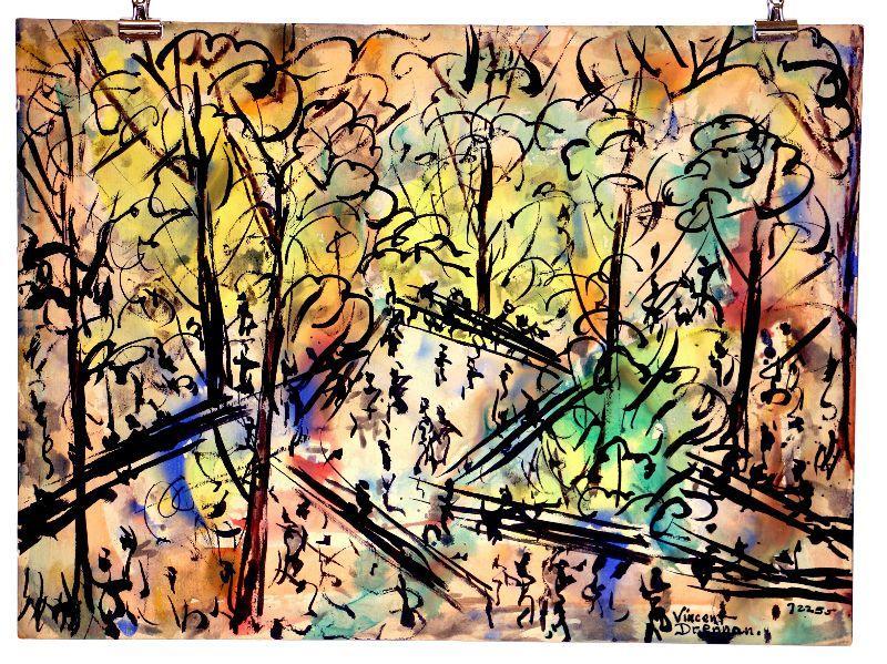 circa 1955 Watercolor Painting 24" x 18" Signed Vincent Drennan #037