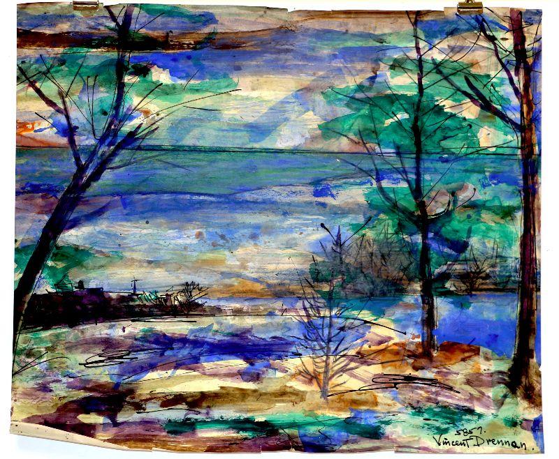 circa 1957 Watercolor 24" x 18" Signed Vincent Drennan #020