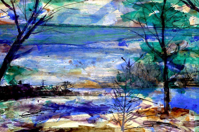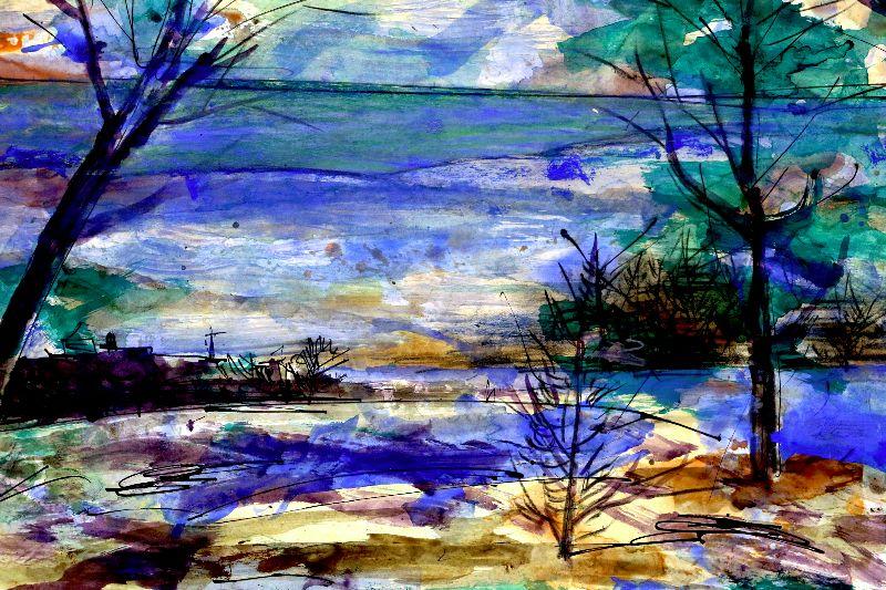 Original painting signed by artist Vincent Drennan. Medium: Watercolor/Goach, Support: Paper, Artist: Vincent Drennan, Signature: Yes, lower right, Approximate Work size: 24" x 18", Date of creation: 1957, Country of Origin: American, Condition: good - as seen on pictures.