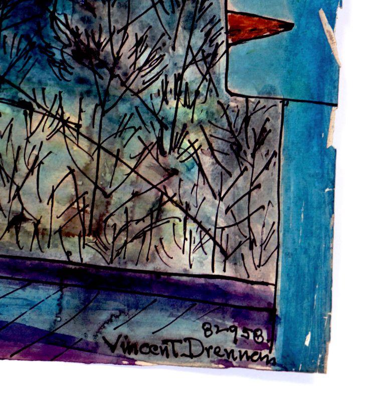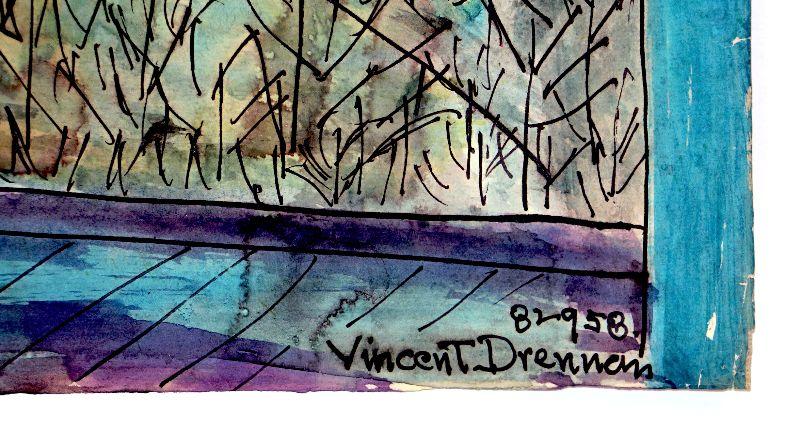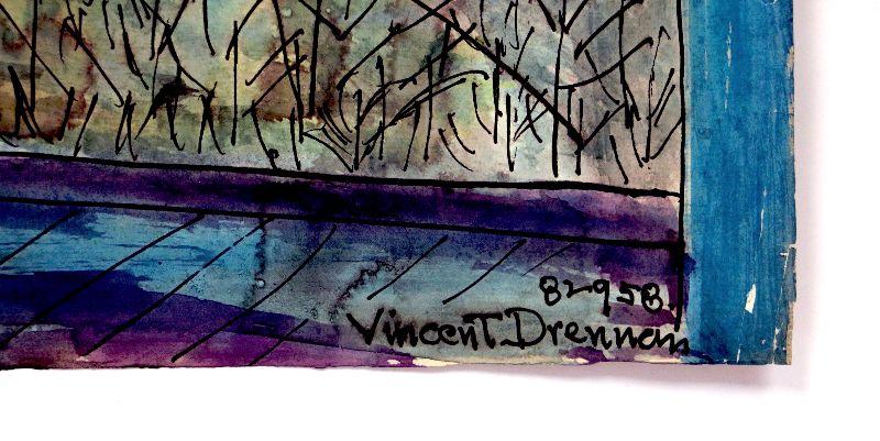 circa 1958 Watercolor 22" x 17" Signed Vincent Drennan #023