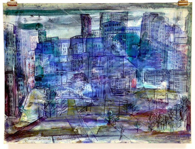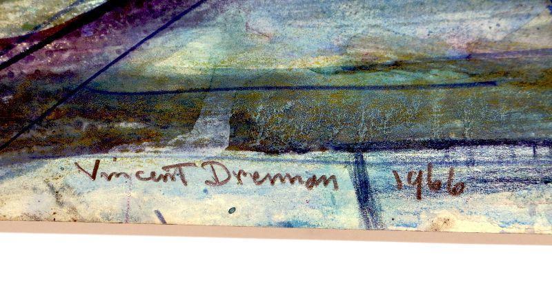 Original painting signed by artist Vincent Drennan. Medium: Watercolor/Goach/Pastel, Support: Paper, Artist: Vincent Drennan, Signature: Yes, lower right, Approximate Work size: 24" x 18", Date of creation: 1965, Country of Origin: American, Condition: good - as seen on pictures.