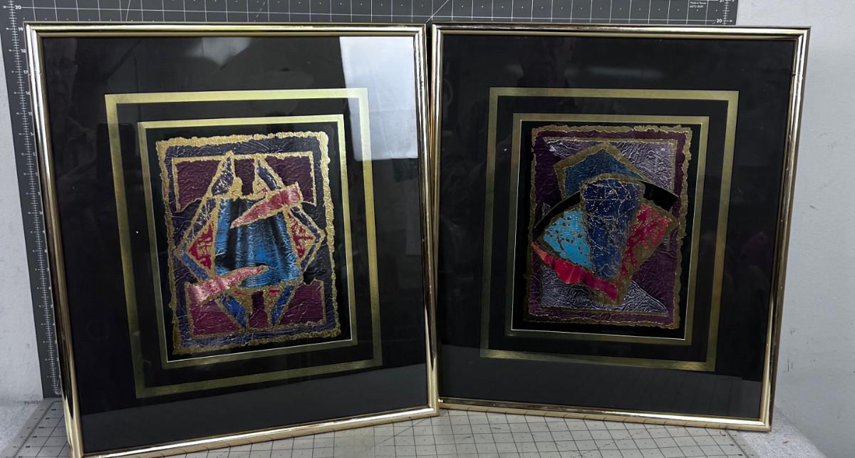 Circa 1990 Abstract Pair Art Framed and Matted