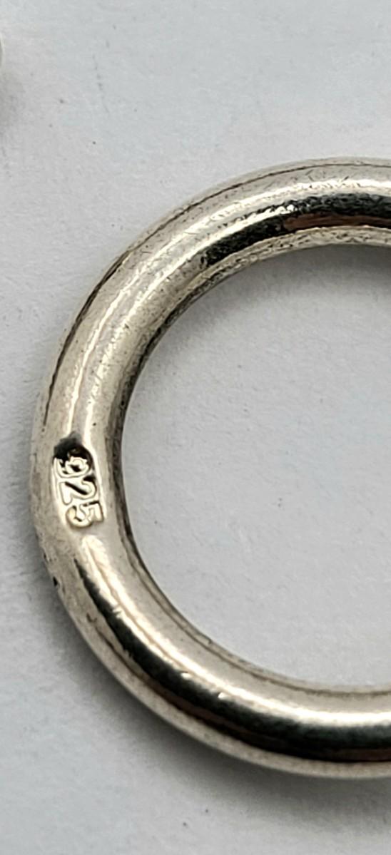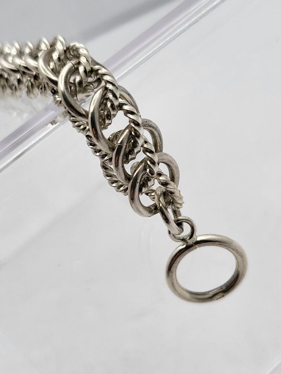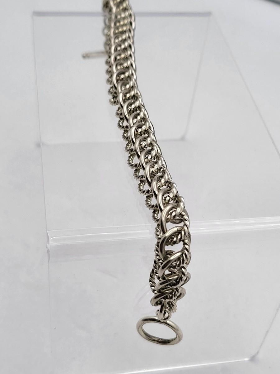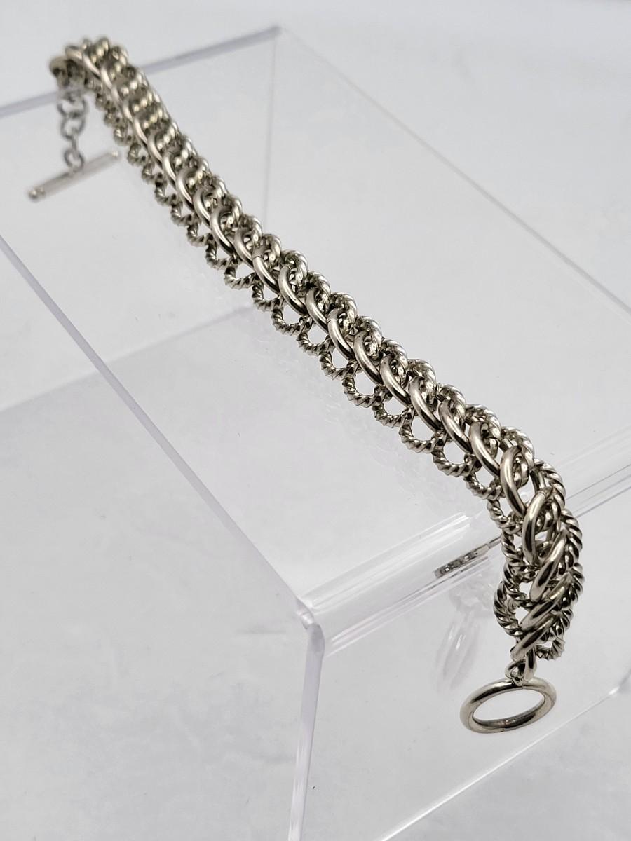Sterling silver, interlocking circles, link bracelet, 7.25" long with toggle clasp. Weighs 36 grams.