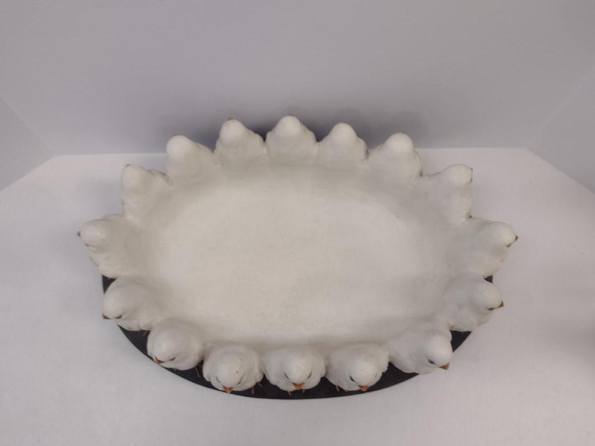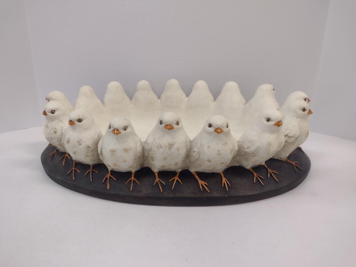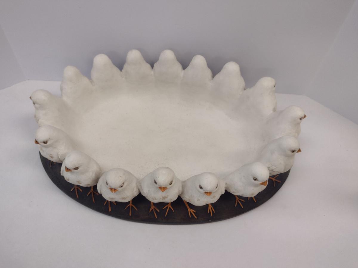 Circle of Chicks Bowl- Approx 12" x 18". Item appears to be hollow resin. Perfect for use as a centerpiece bowl, or can be used outside if weatherproofed.