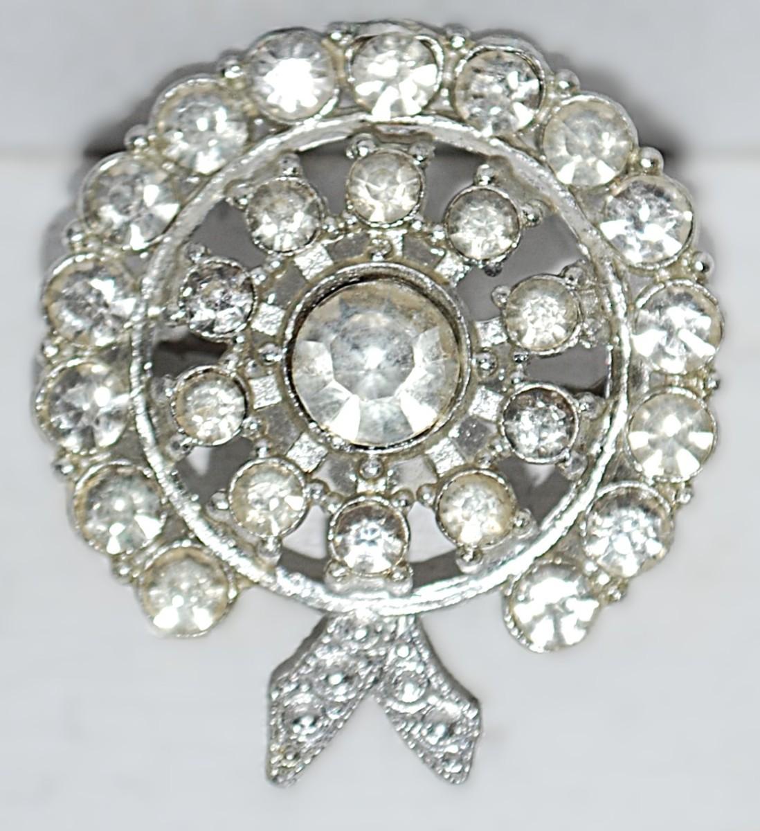 Circle of Stones BROOCH (1¼" Diam.) and Large Center Round Main Stone on a Silver Tone Setting