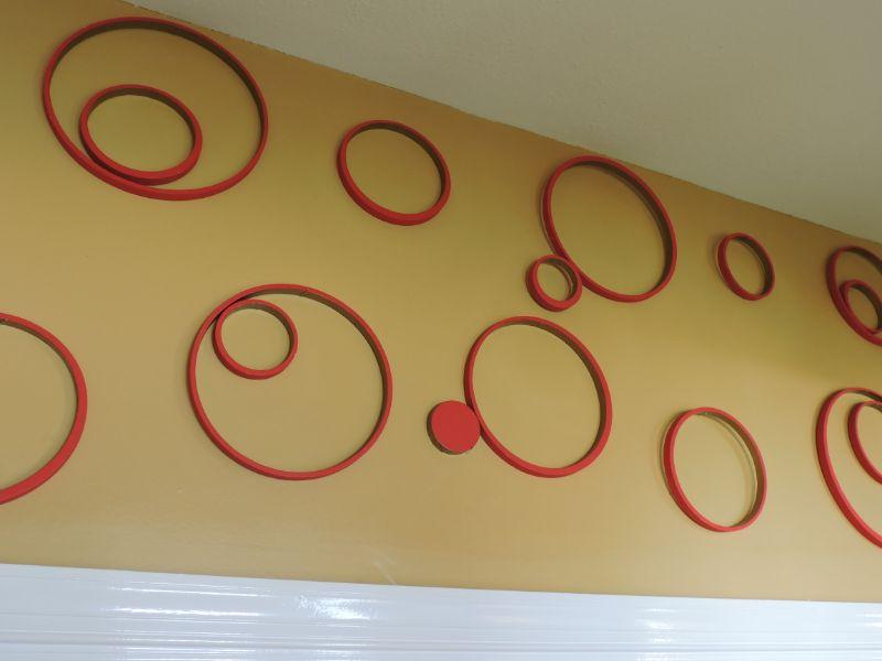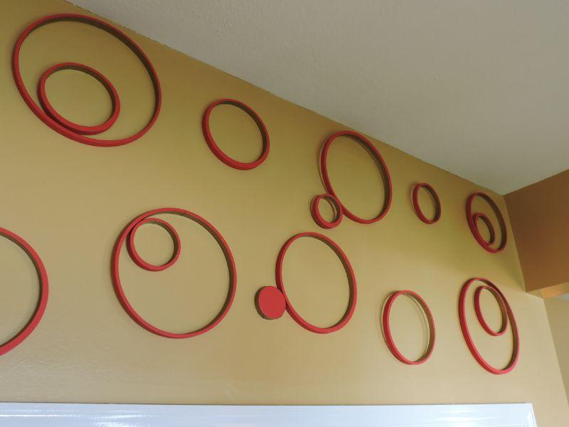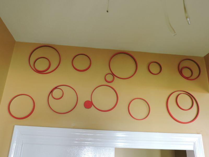Wood Circles that can be displayed in any arrangement. Just hanging on small nail. The circles are 3-11". **Please read Terms and Conditions before placing a bid. Pick up is Wednesday, September 25 from 4pm to 7pm and Saturday, September 28 from 9am to 1pm in Williamstown, NJ. All sales are final. All sales are as is, where is. Please review all photos. Any props included in photos are not included in listing. All measurements are approximate.
