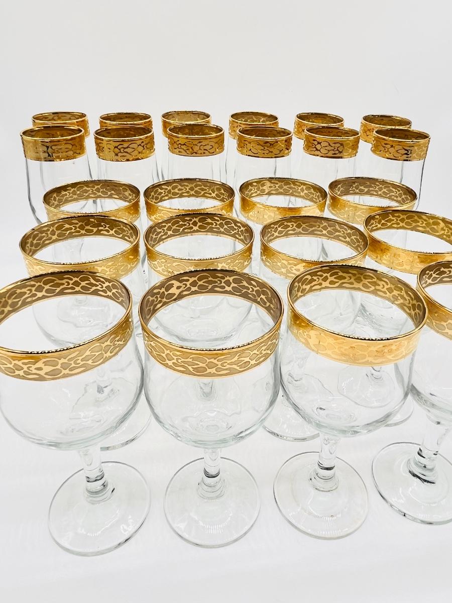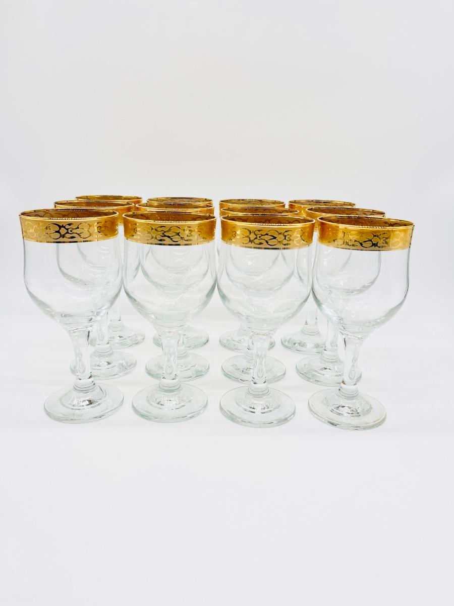 CIRCLEWARE CRYSTAL ~ CRZ9 ~ Gold Rim Goblets & Champagne ~ 2 Piece Service For 12