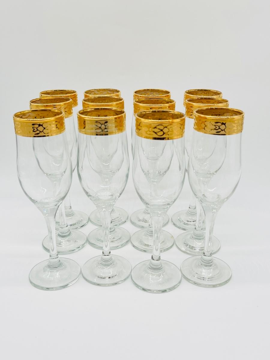 Includes = (12) Water goblets 6 3/4” H ~ (12) Fluted Champagne 8 1/8” H