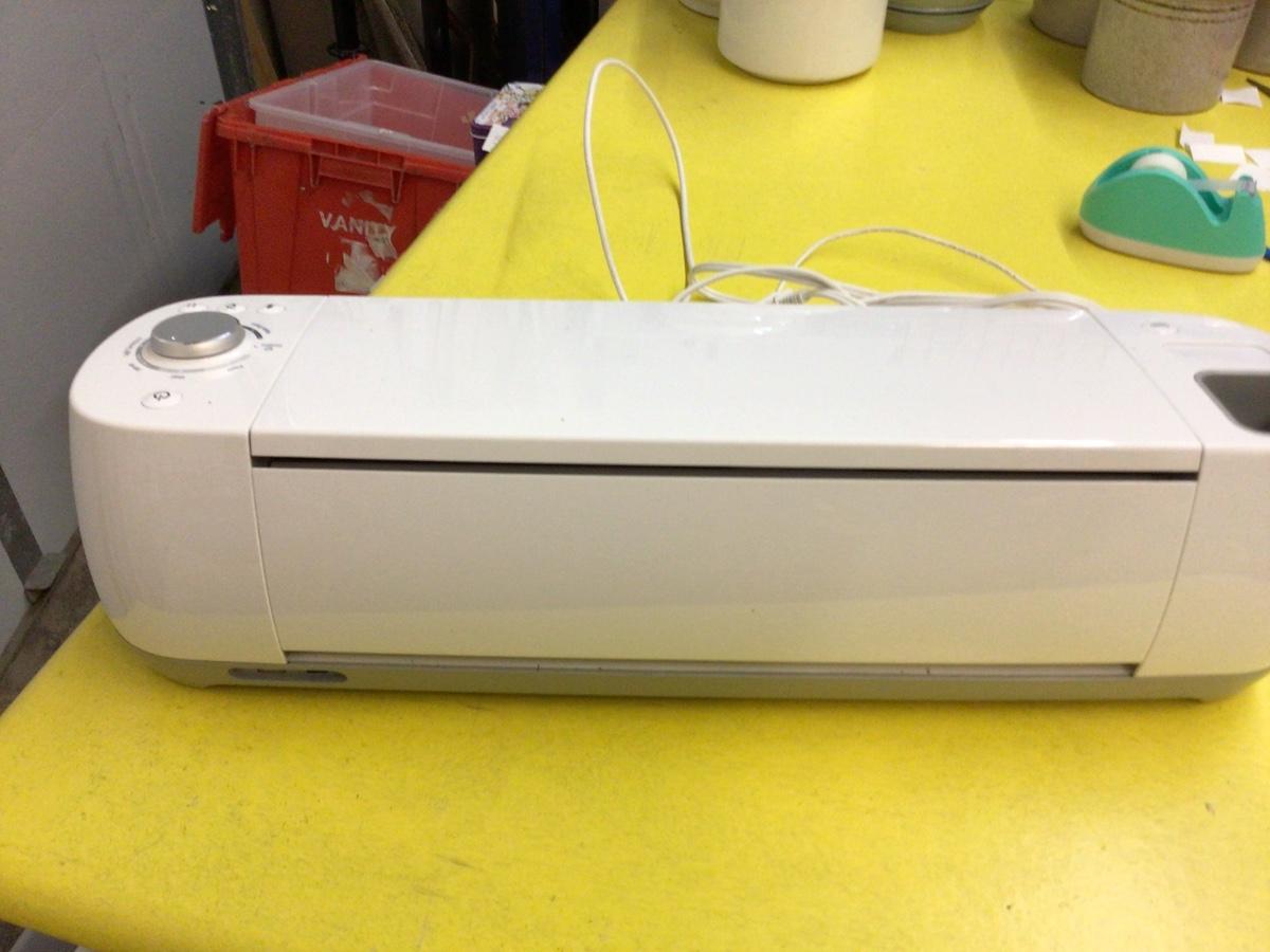 This is a scrapbooking Cricet Machine works great, does need drivers update downloaded. Two cords one is power the other is to hook to computer to get drivers and more fonts.
