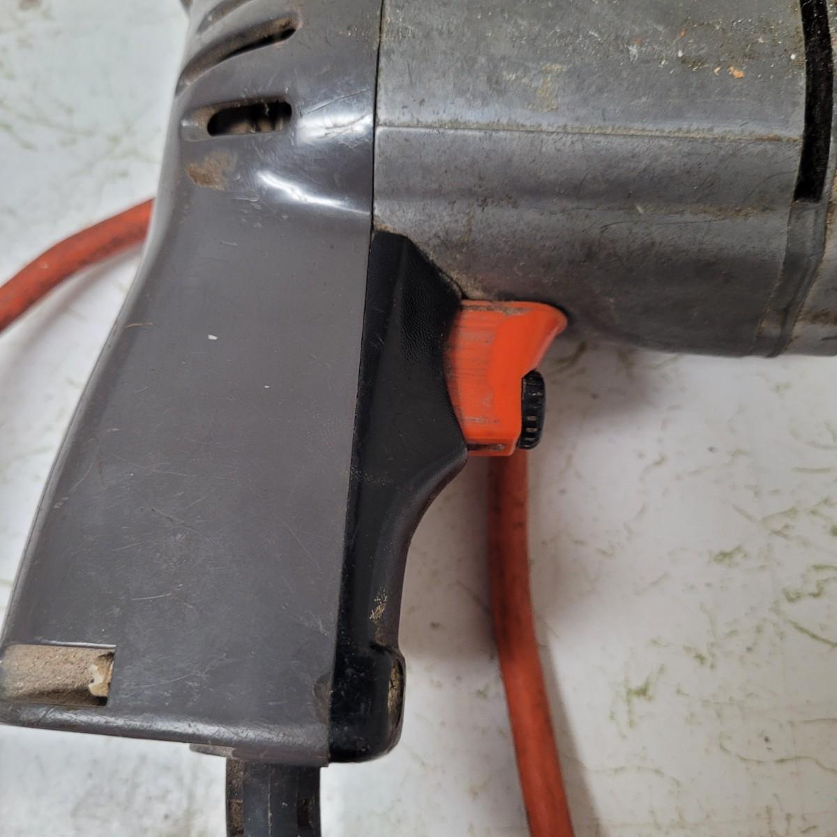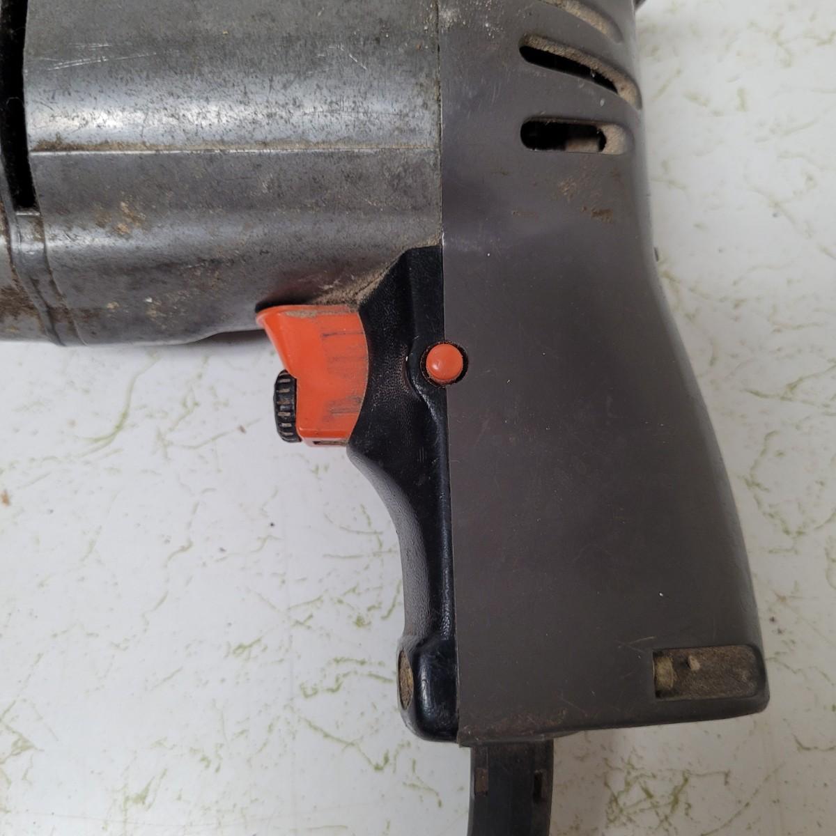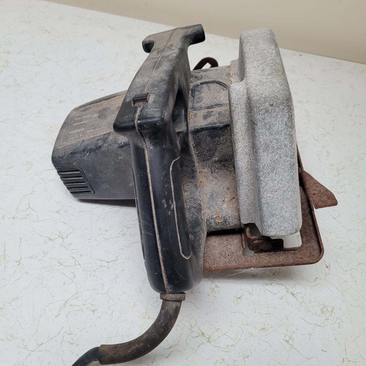 This lot includes a Sears brand circular saw and a power drill. The circular saw is 7-1/4" and 2-1/8 HP. It is corded and powered on when plugged in. The blade is old and needs replaced. The power drill is unmarked. It is corded and powered in when plugged in.