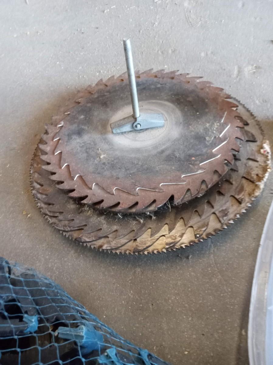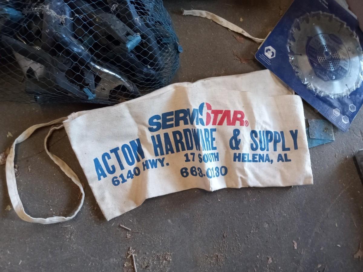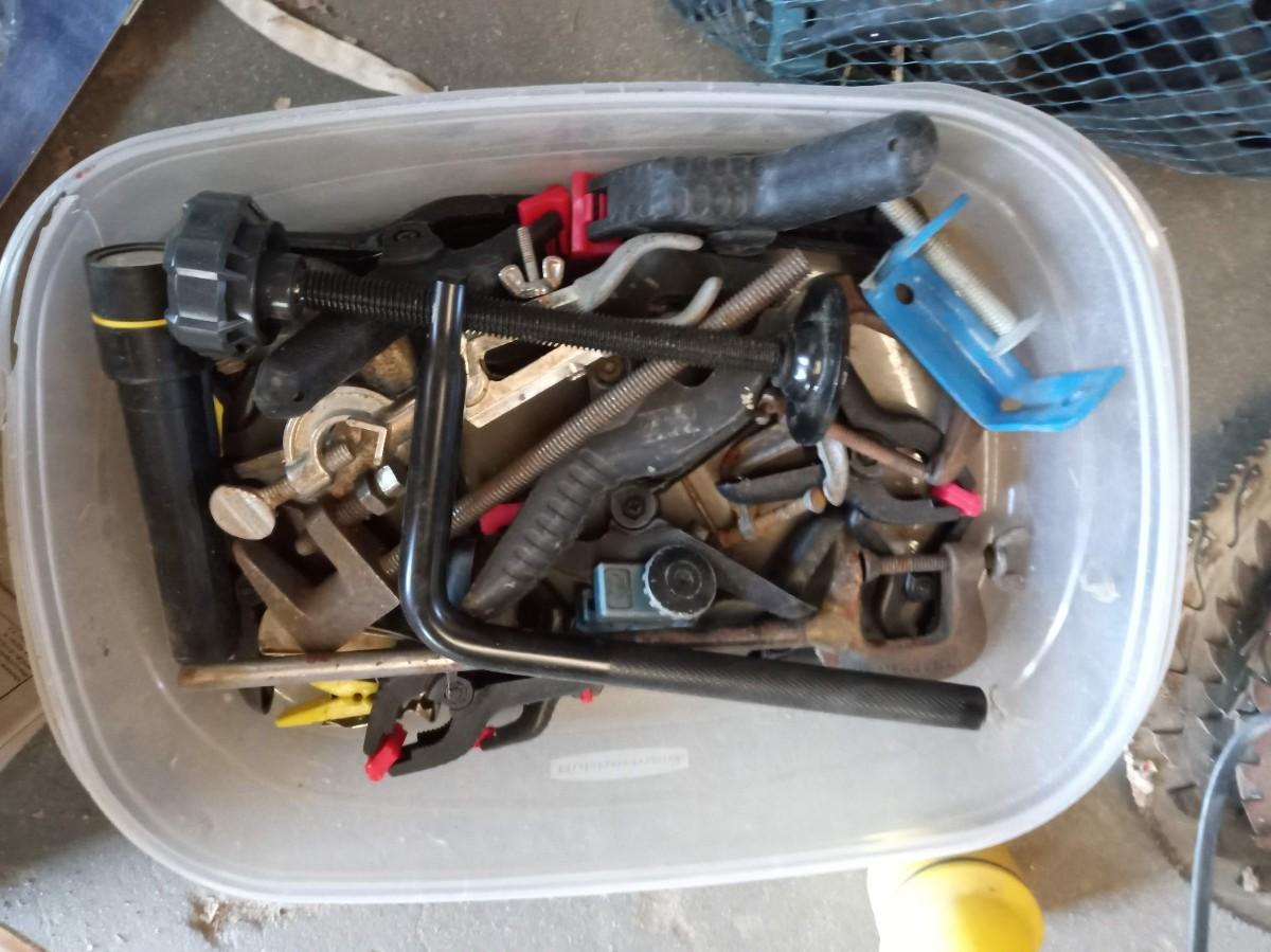 MOSTLY 7 1/4" SAW BLADES, MANY DIFFERENT TYPES OF CLAMPS, APRON AND FLASHLIGHTS