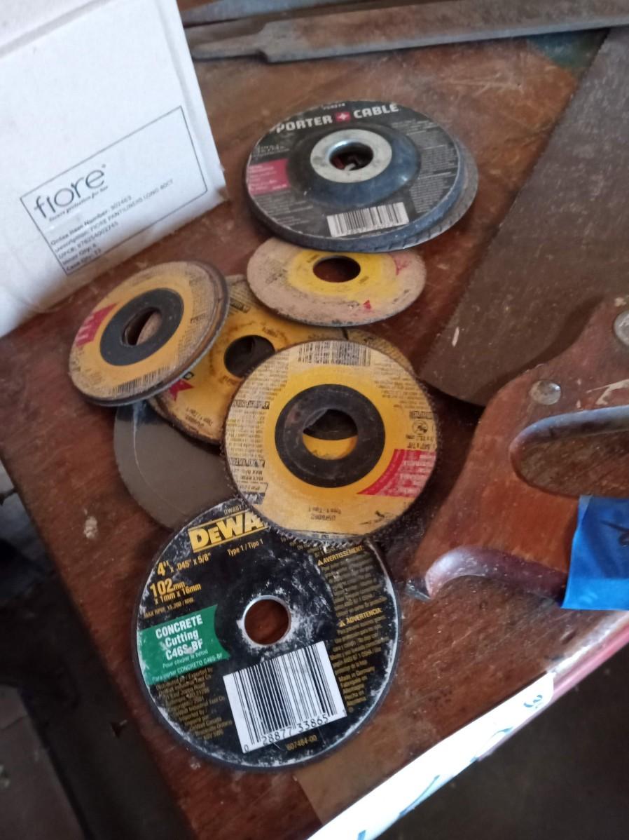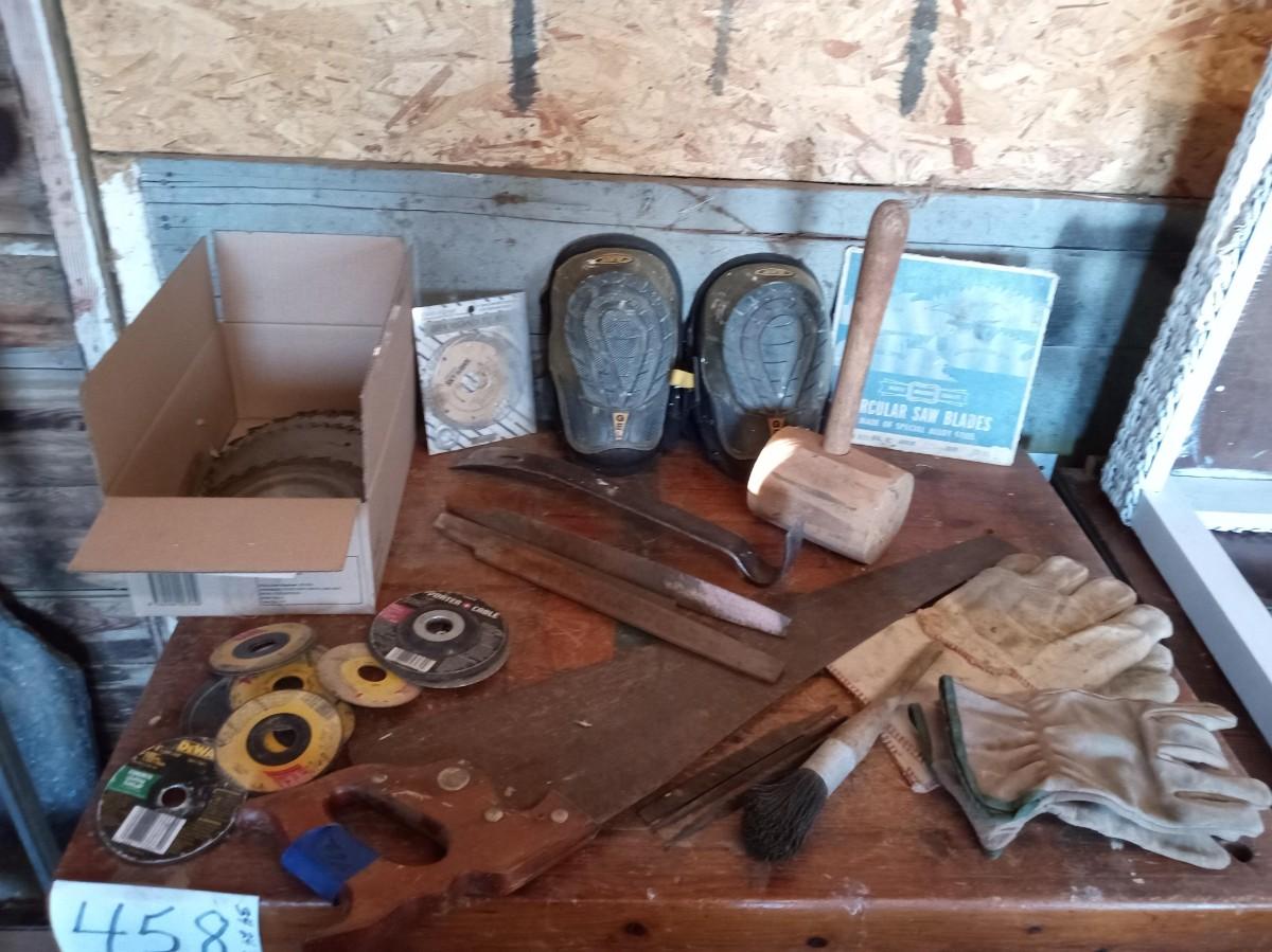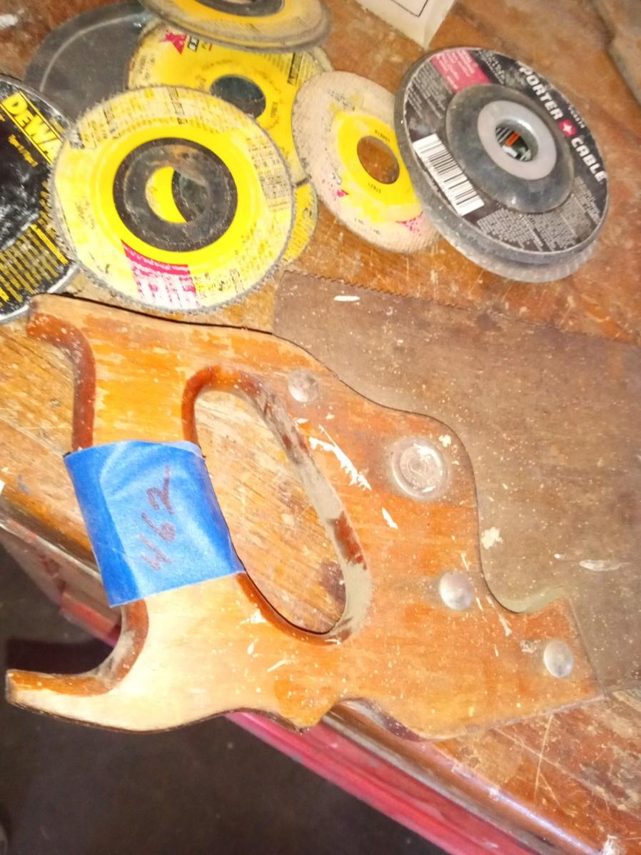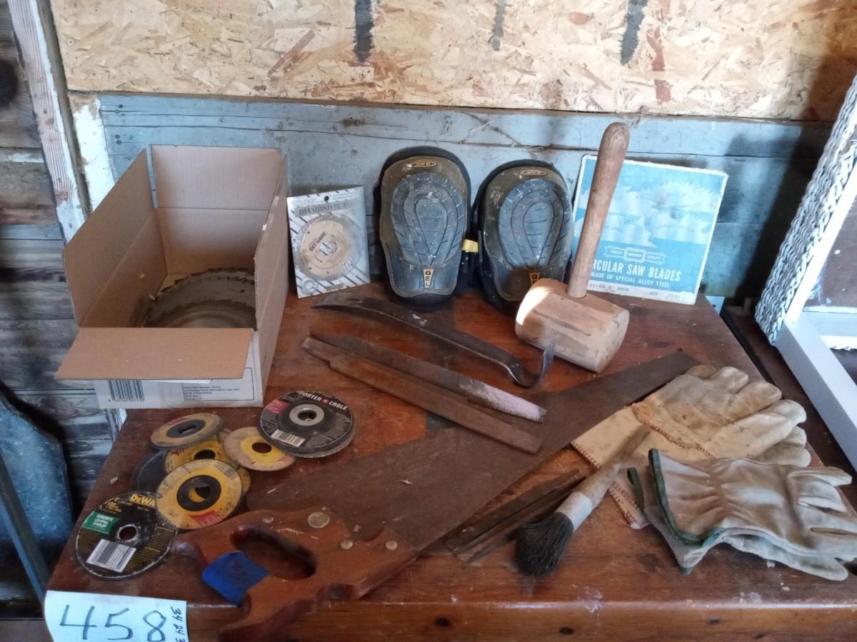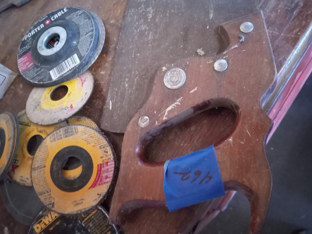 CUT OFF WHEELS, METAL FILES, NAIL PULLER, HAND SAW AND WOODEN (FLINTSTONE) MALLET