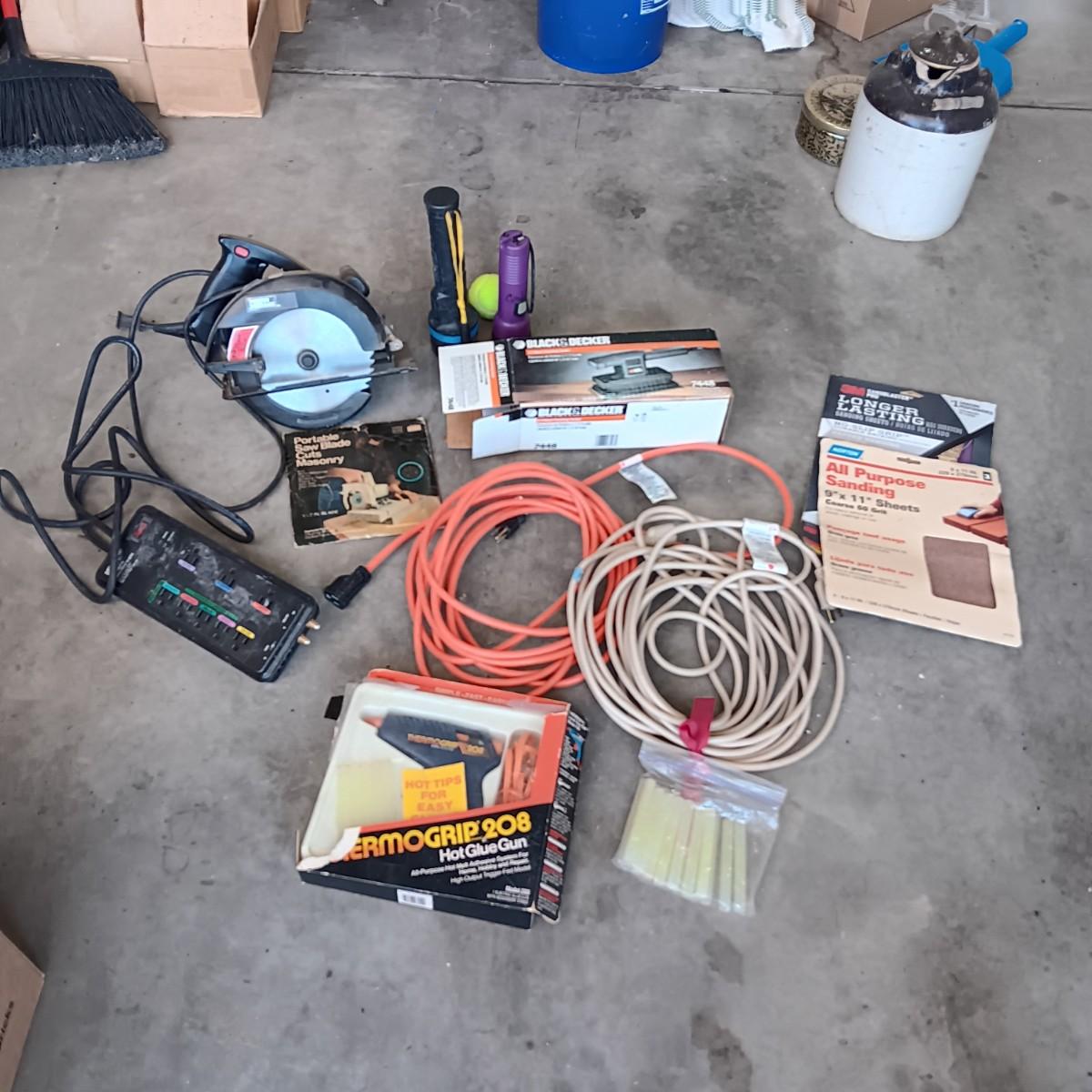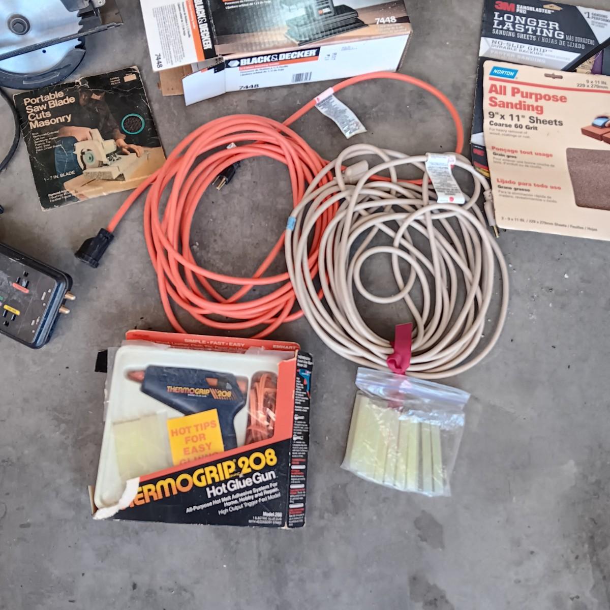 CIRCULAR SAW, SANDER, GLUE GUN, EXTENSION CORDS AND MORE