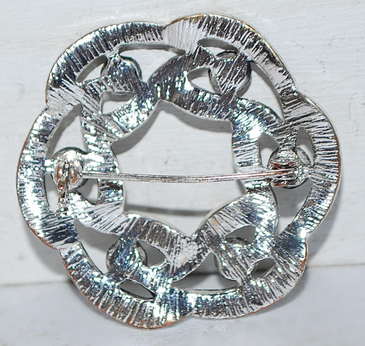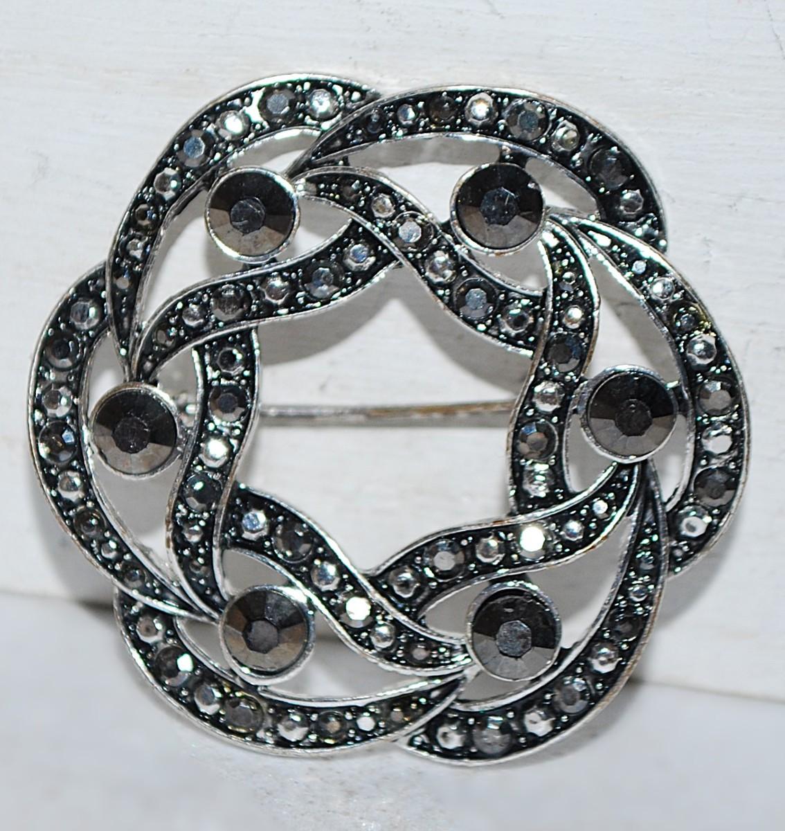 Circular Swirls of GRAY Stones BROOCH (1¾" Diam.) on a Silver Tone Setting