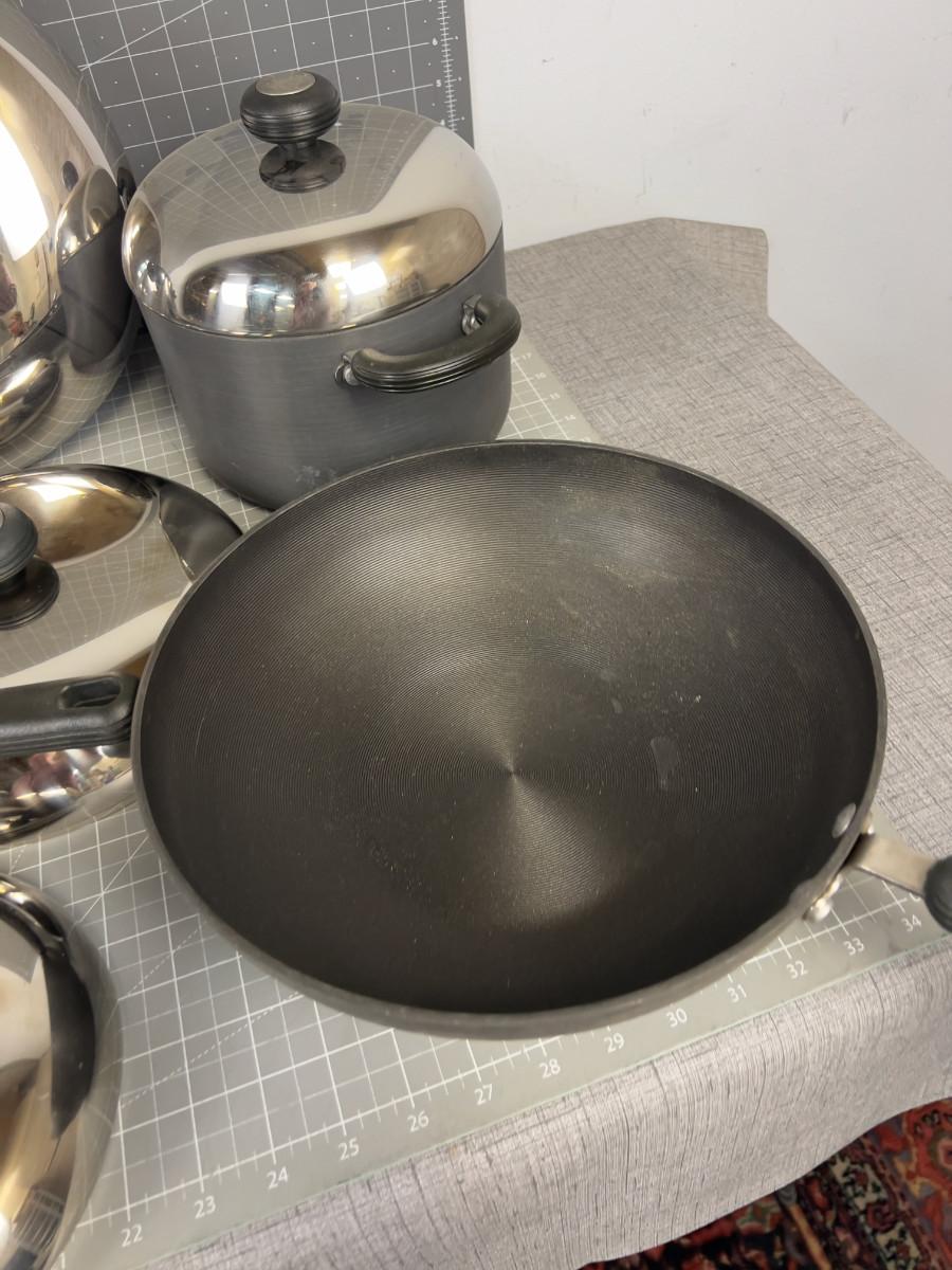 Good Condition. Extra Lids and not Complete. BUT NICE!!! And well no uses all the pans anyway!!