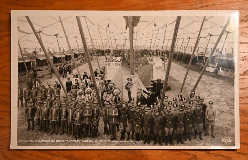 A photograph (1935) of the "Ringling Brothers and Barnum & Bailey Circus Menagerie", by artist Edward J. Kelty (American, 1888-1967). Published by Century. Approx. 20" x 12".