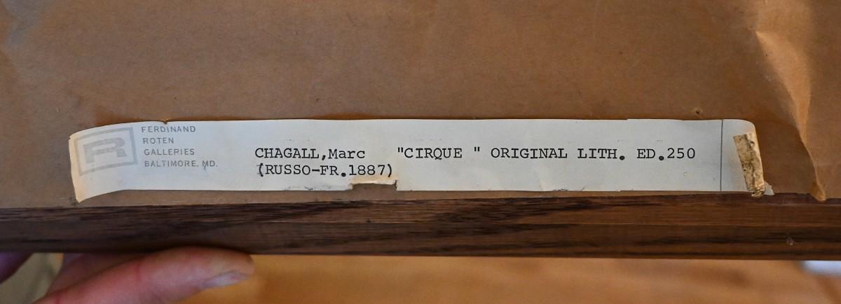 "Cirque" by artist Marc Chagall (Russian-French, 1887-1985). Original lithograph. Approx. 25" x 21". Please note, listed dimensions includes frame.