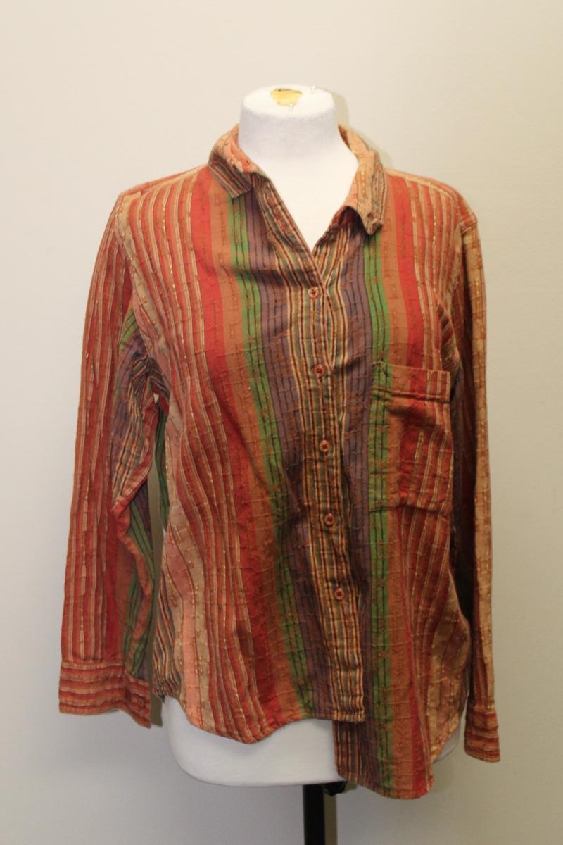 Button up is in great condition. It comes with one pocket on the front of the shirt. Item was made in India and made with 100% cotton. This shirt comes in a size Large.