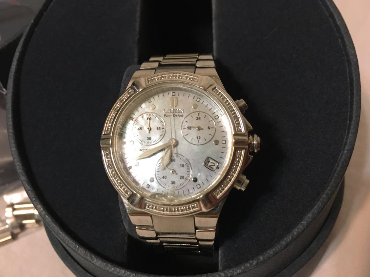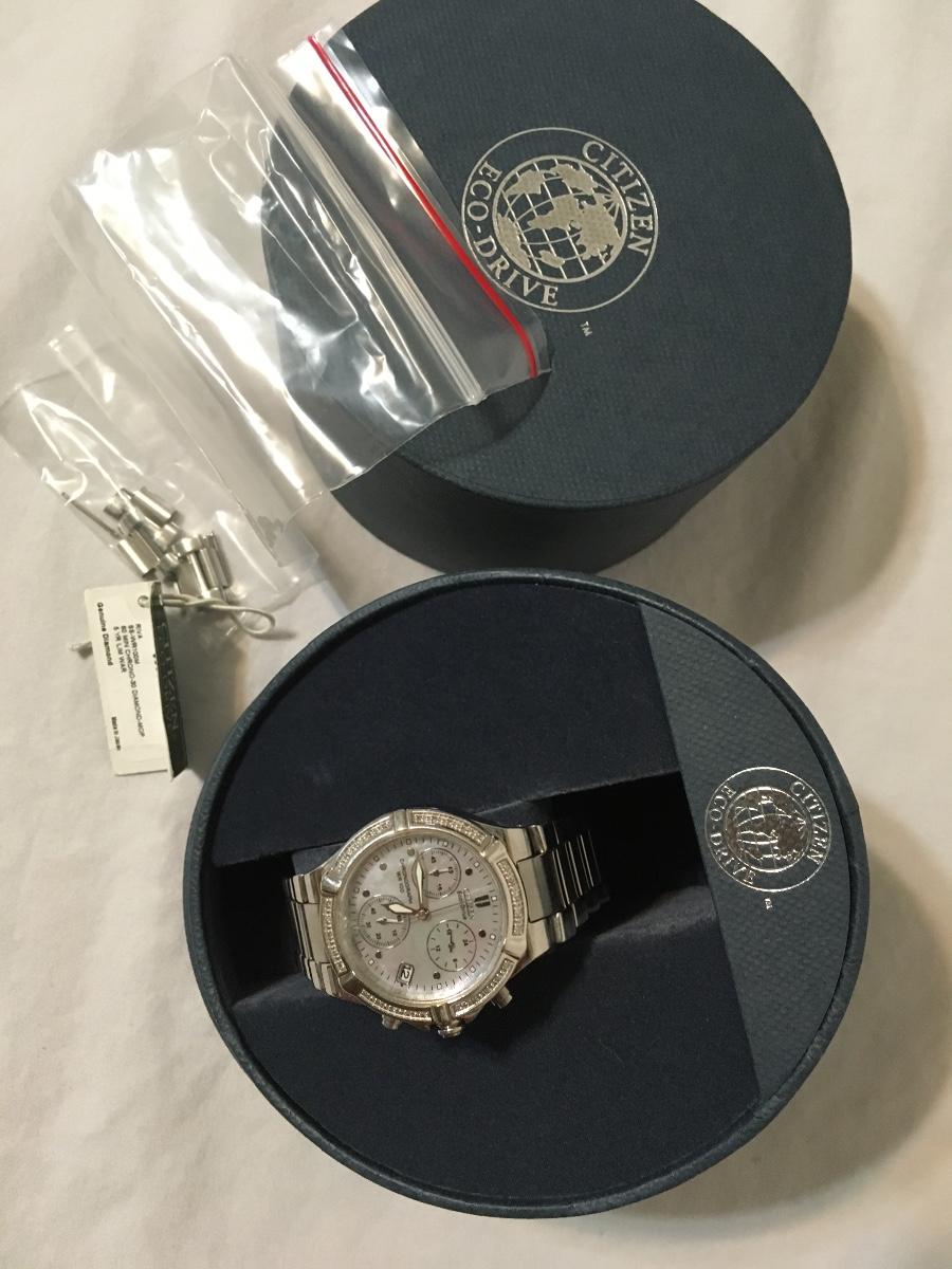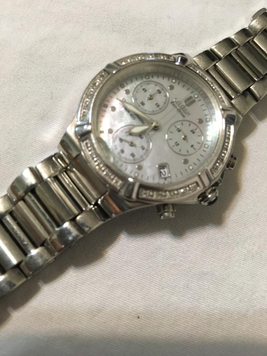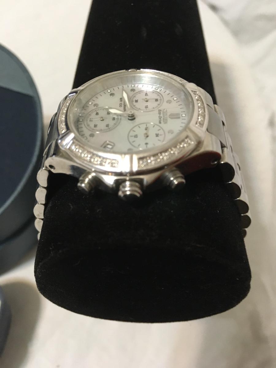Citizen echo drive watch 30 diamond M.O.P. genuine works perfectly diamond crystal has a small chip by number six. Very nice watch please see attached photos
