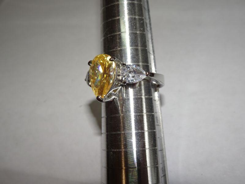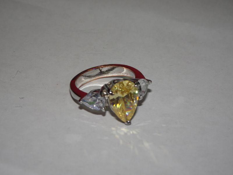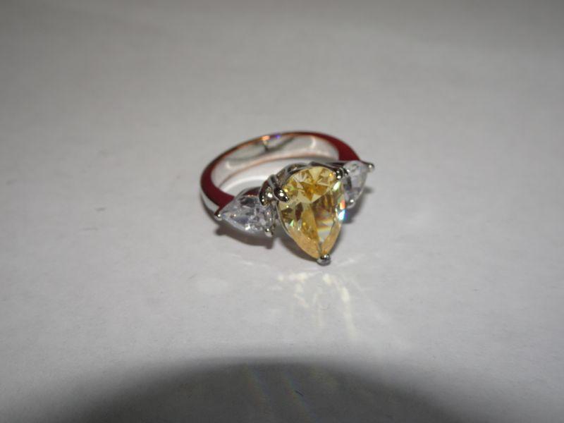 Citrine Colored Pear Shaped Silver Tone Ring, Very Pretty!