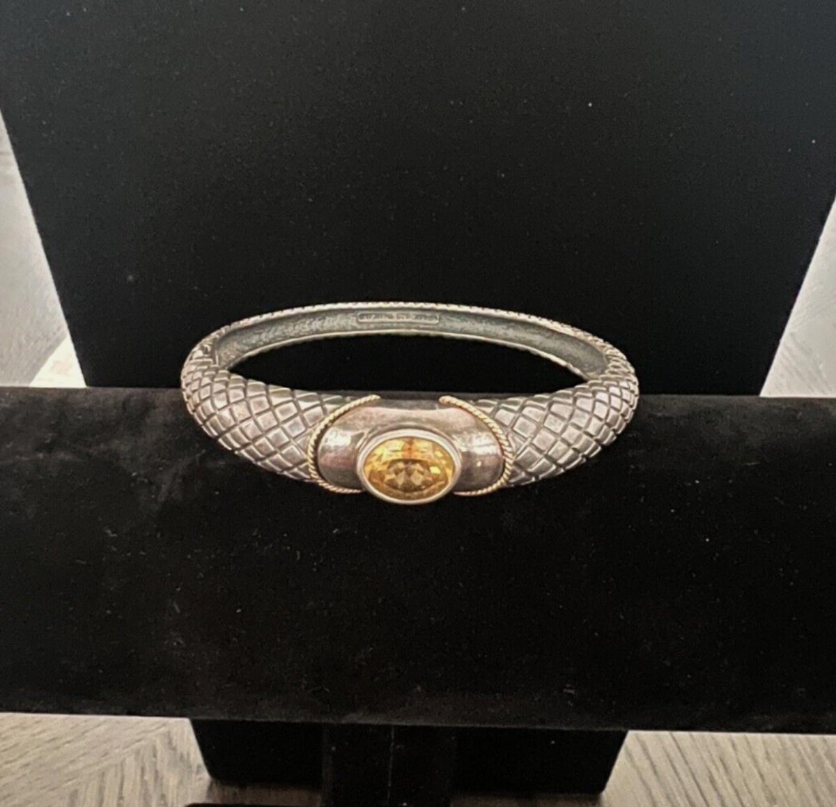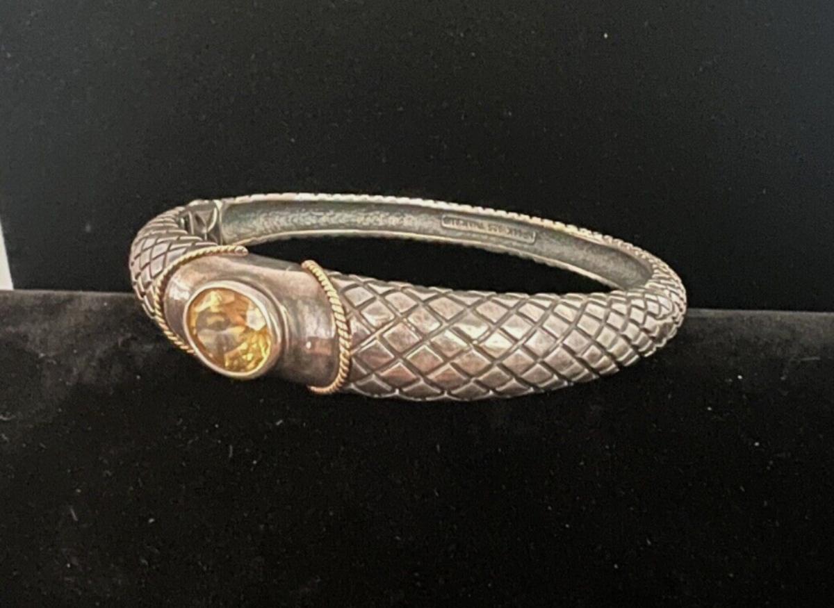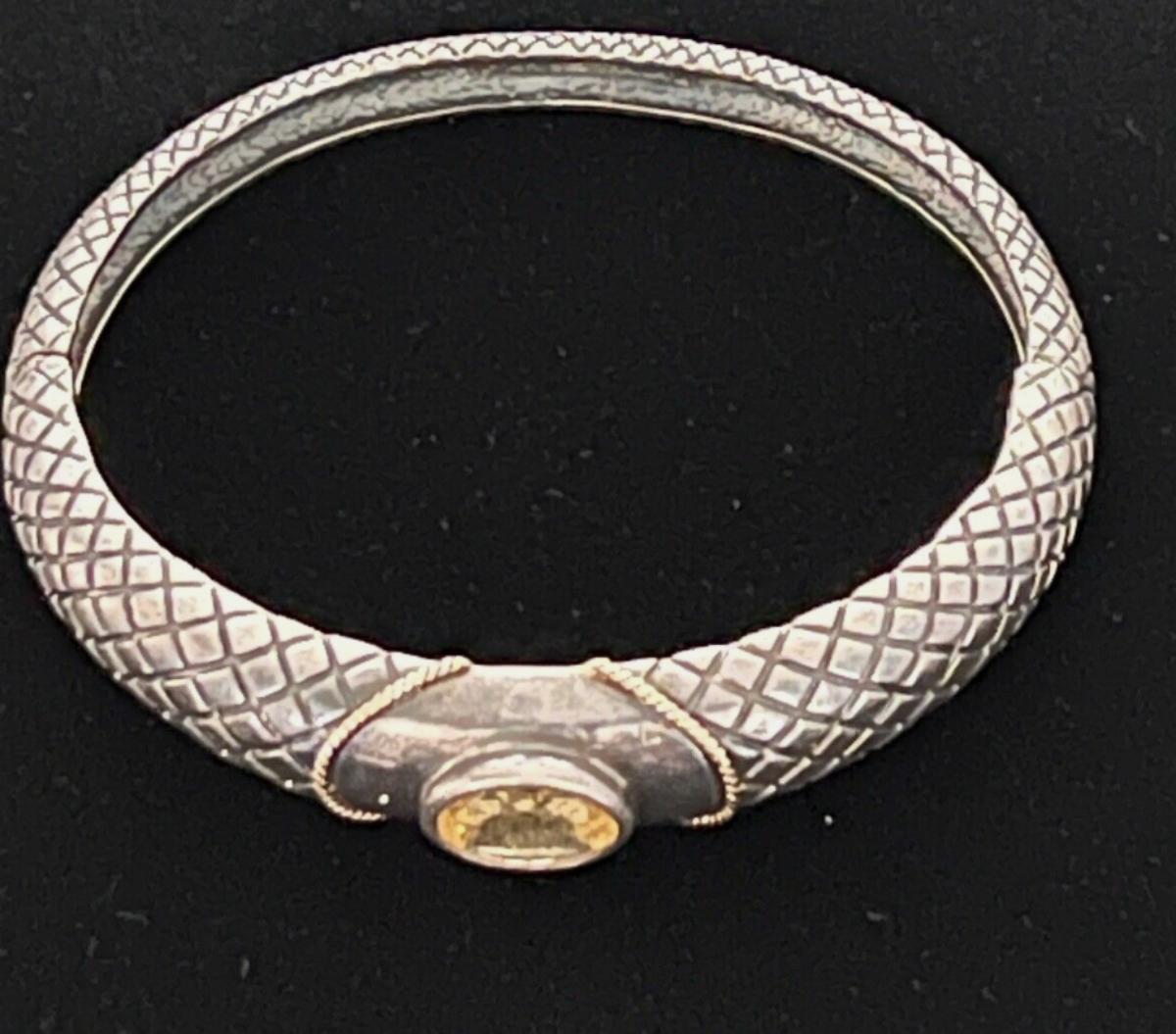 Citrine Stone Bangle Bracelet .925 with 14K Accents