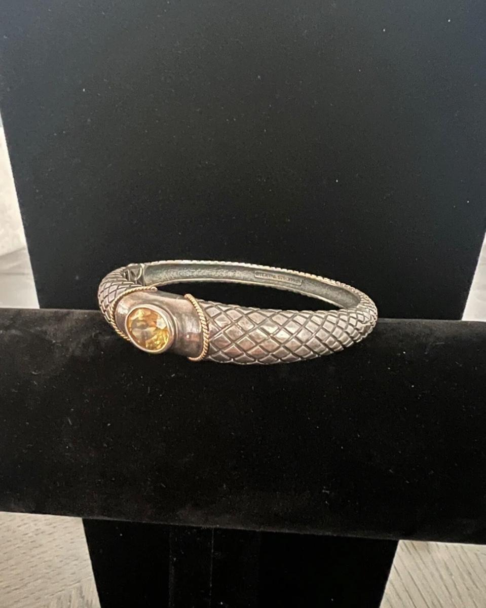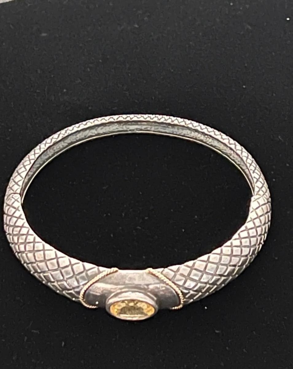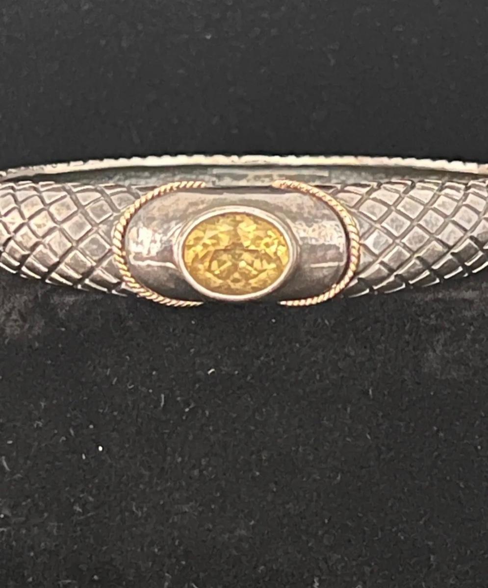 Citrine Stone Bangle Bracelet .925 with 14KT Accents
