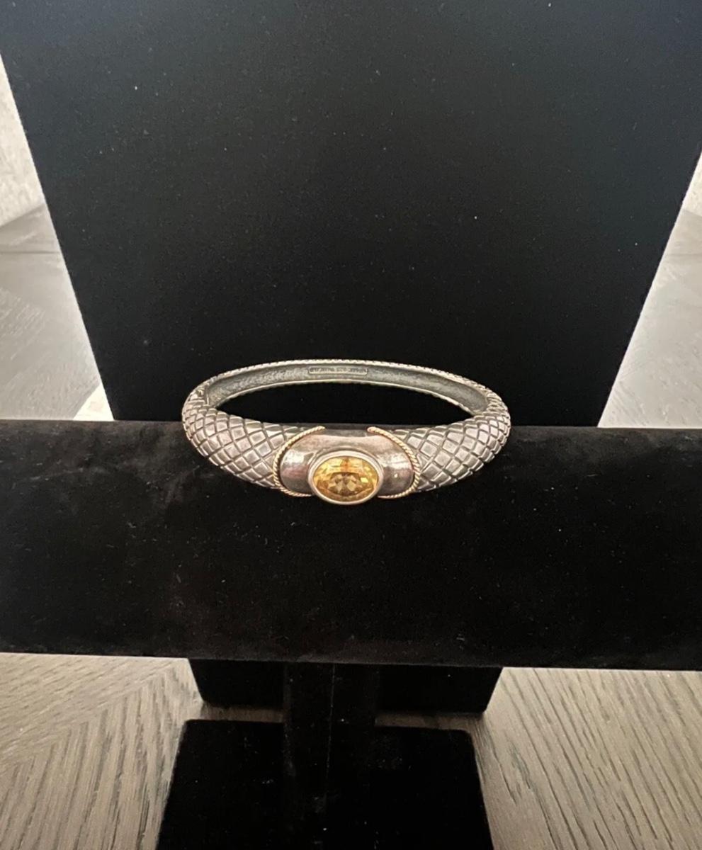 Citrine Stone Bangle Bracelet .925 with 14KT  Accents