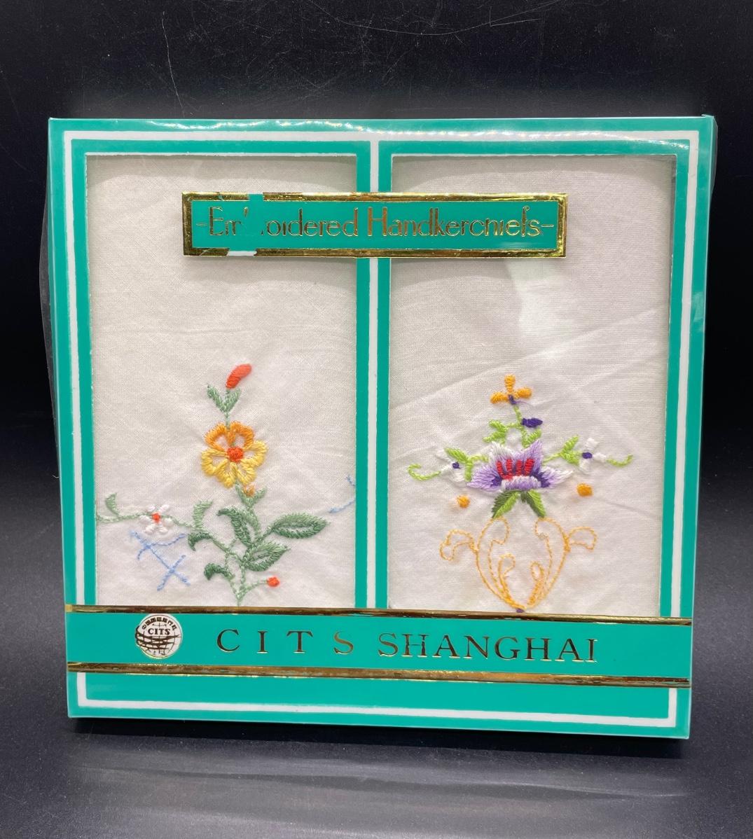 Cits Shanghai Floral Embroidered Handkerchiefs Set of Two