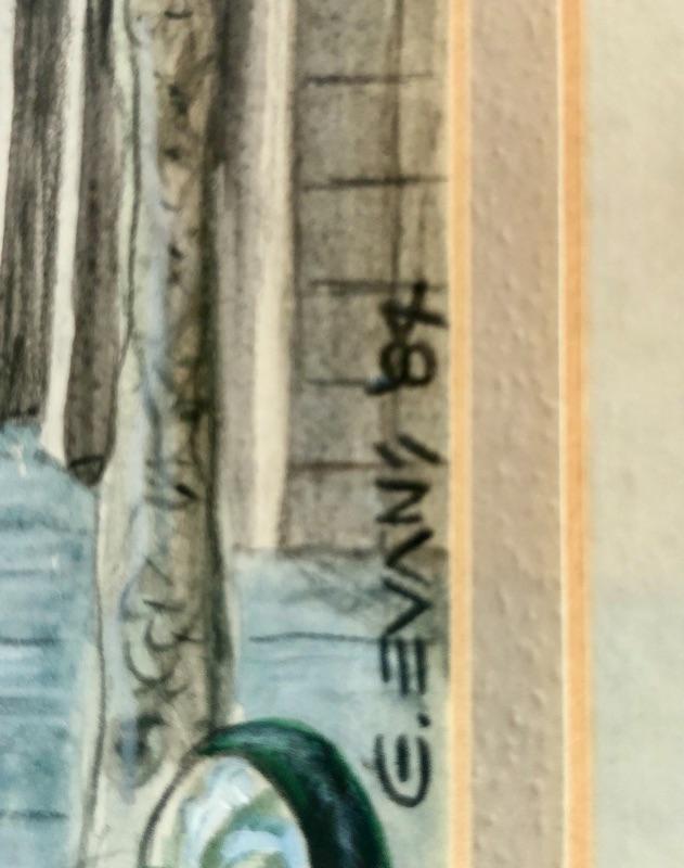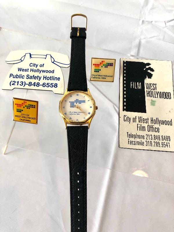 Original painting, matted and framed. Also included are other items from this period: 1984 watch (leather band) & lapel pins