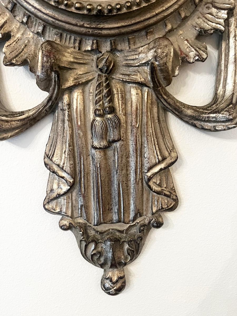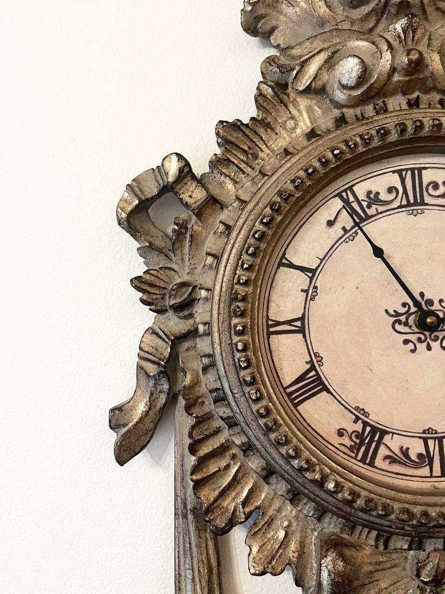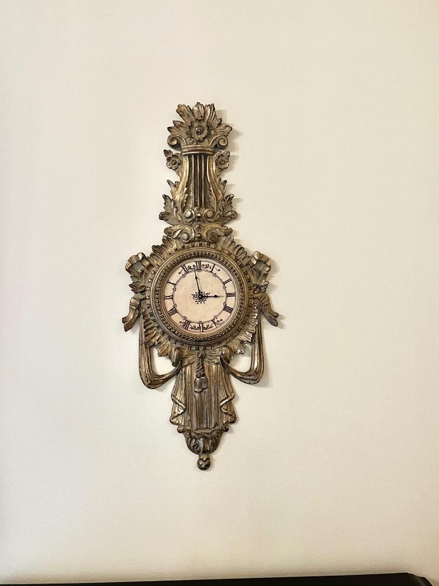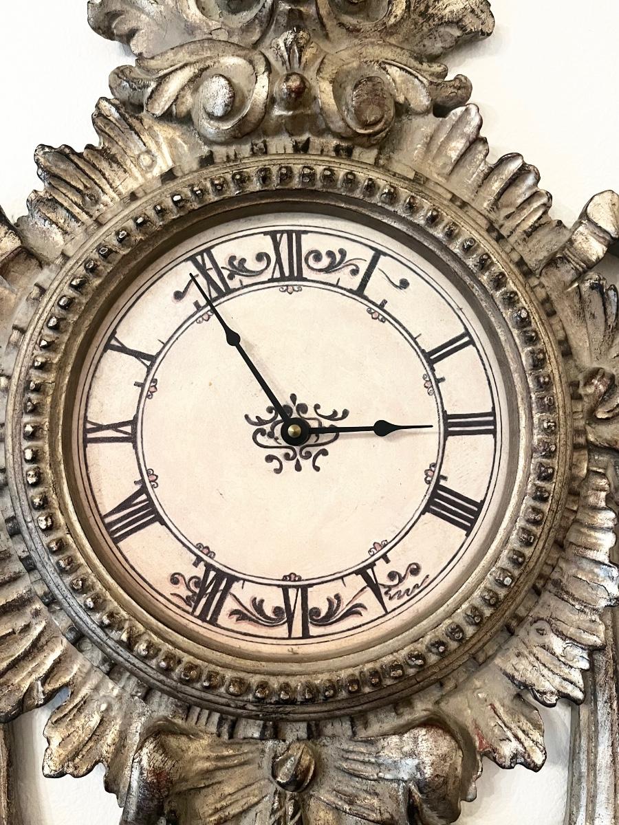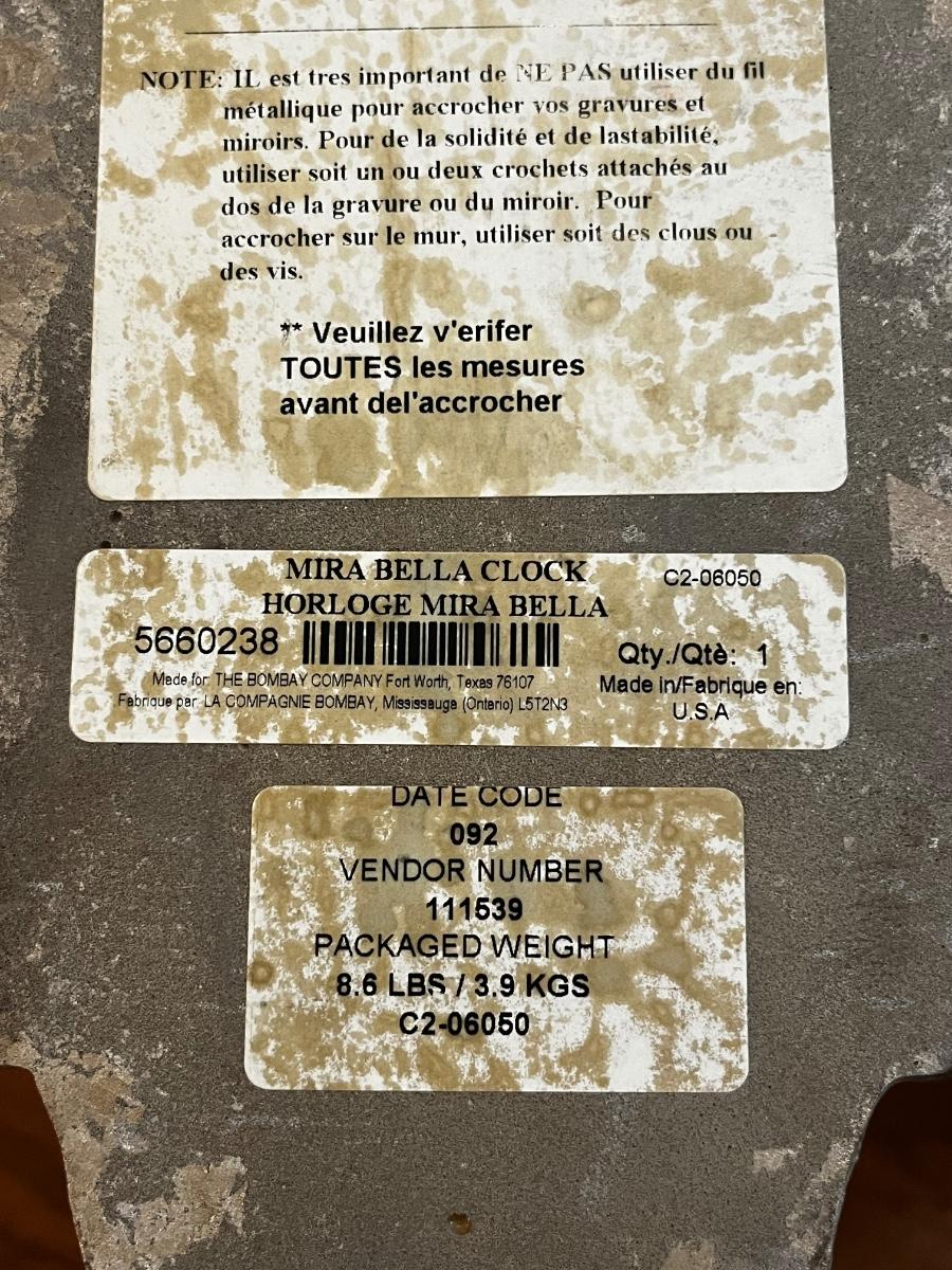 38”H x 17” W ~ Made out of a resin-based material ~ battery operated and keeps time.