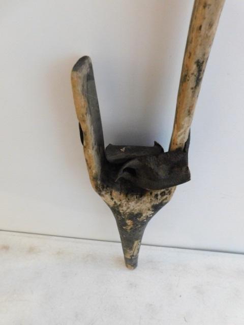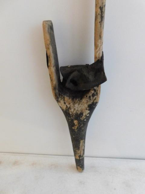 Civil War Era Wood Peg Leg 41" shows small area of repair at point. Leather cushion