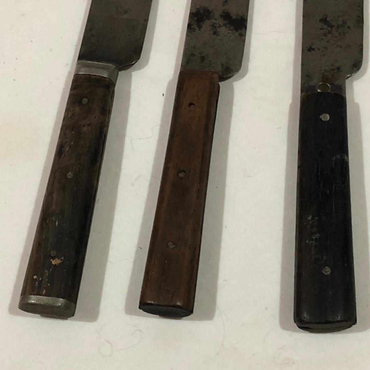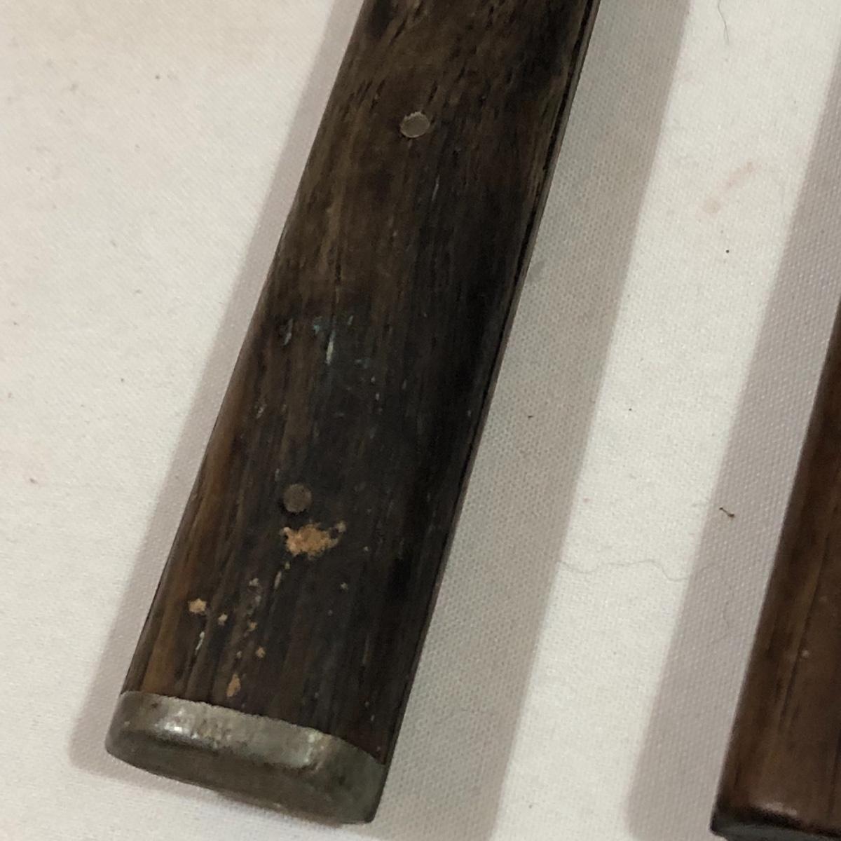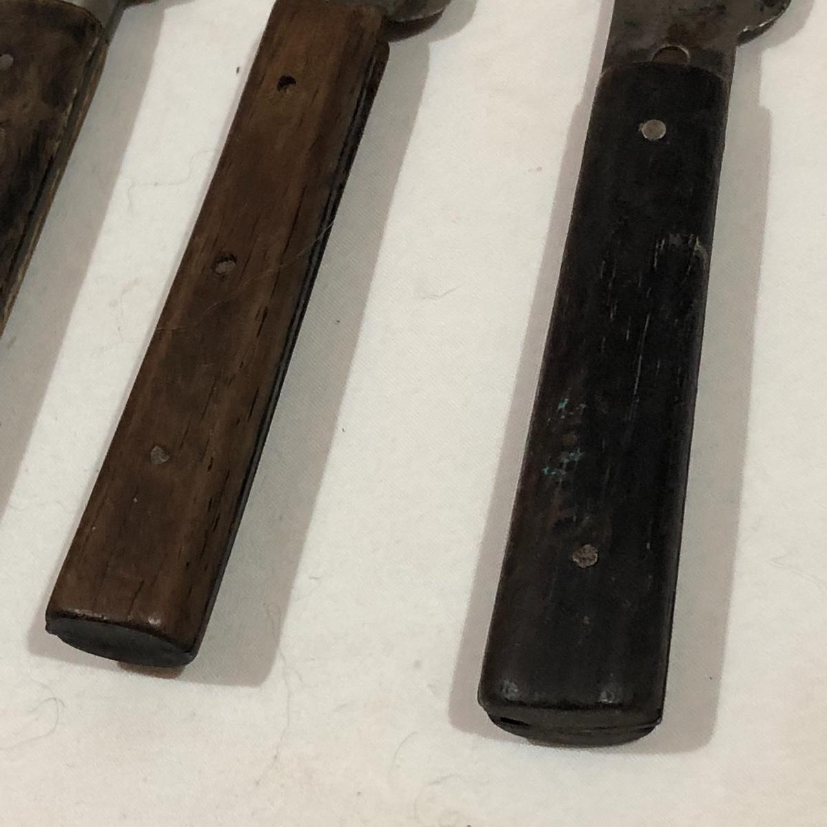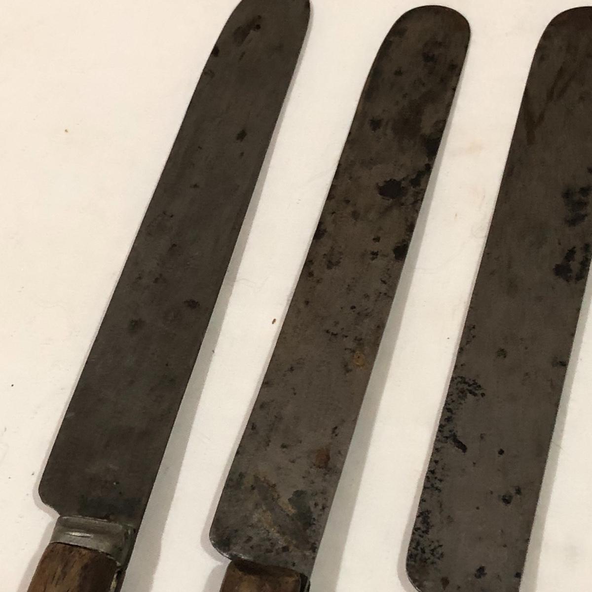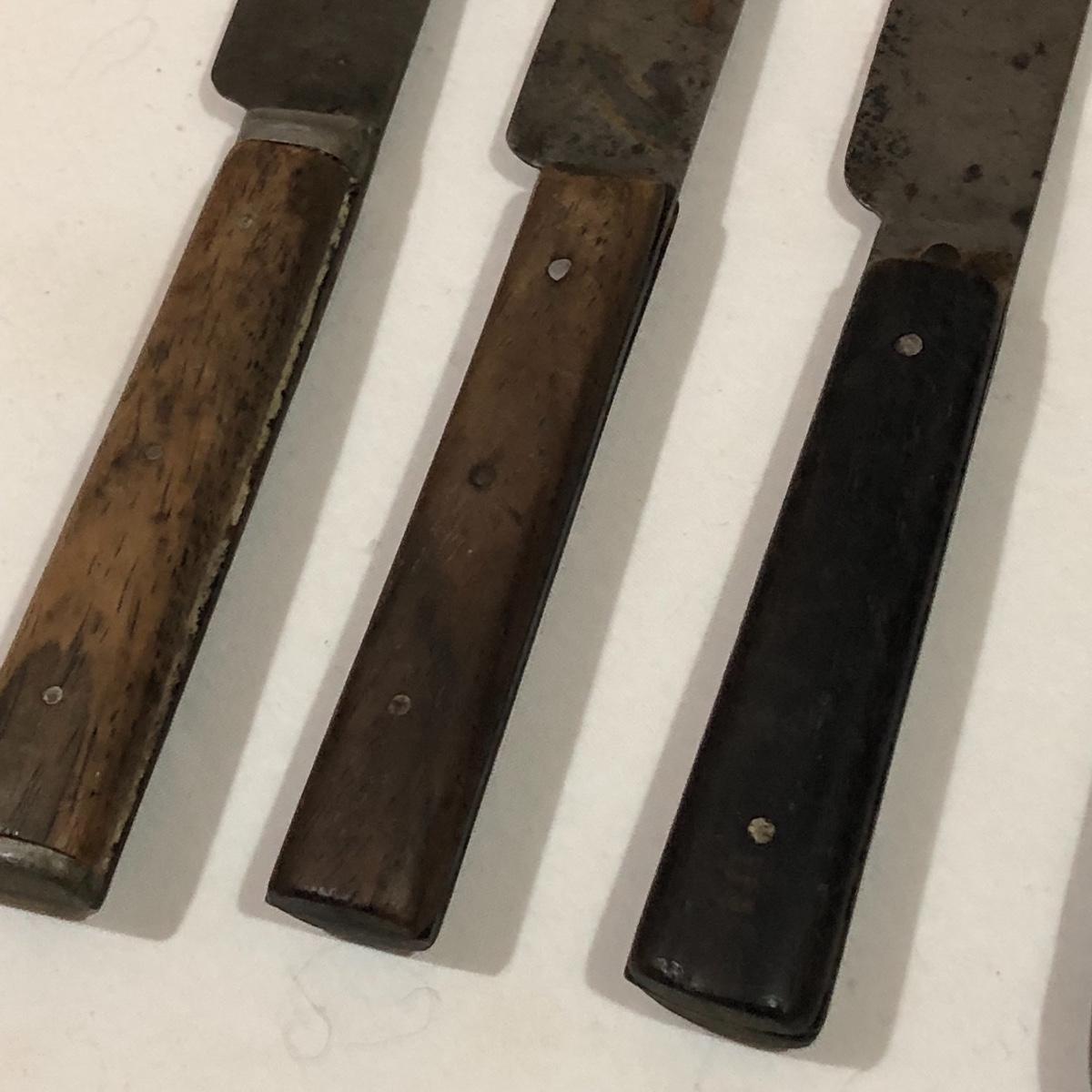 There are 12 items in this lot. The largest knife has two pins, is 13” long and is likely from the Civil War era. There are seven forks-some with antique and decorative pewter inlay. There are four knives - again one distinctively has antique and decorative pewter inlay and is marked “LFC”-Landers, Frary and Clarke. Handles are wood. Shipping Available.