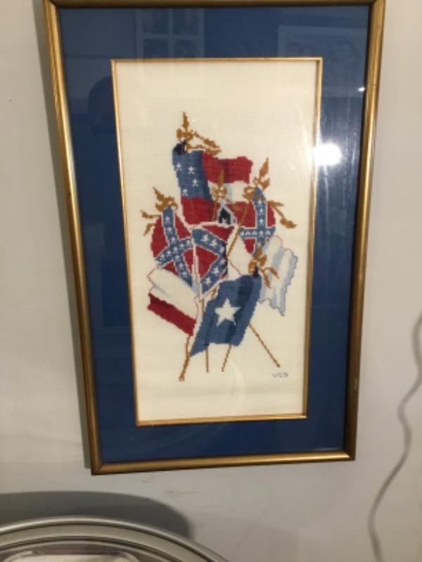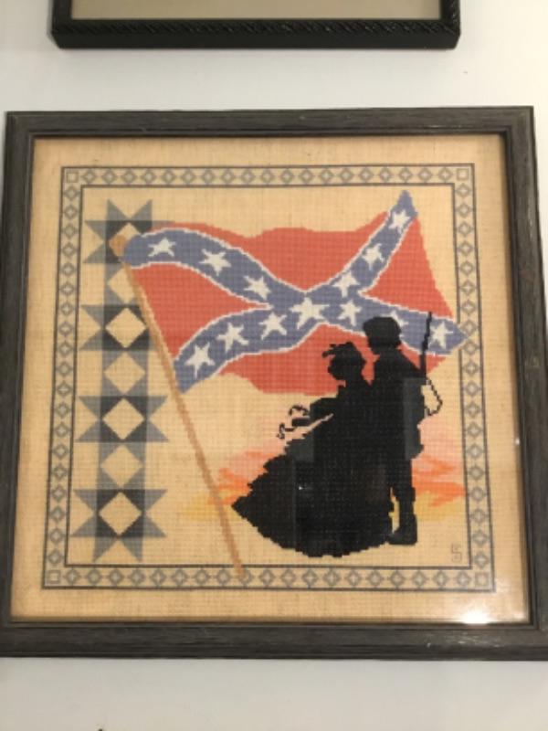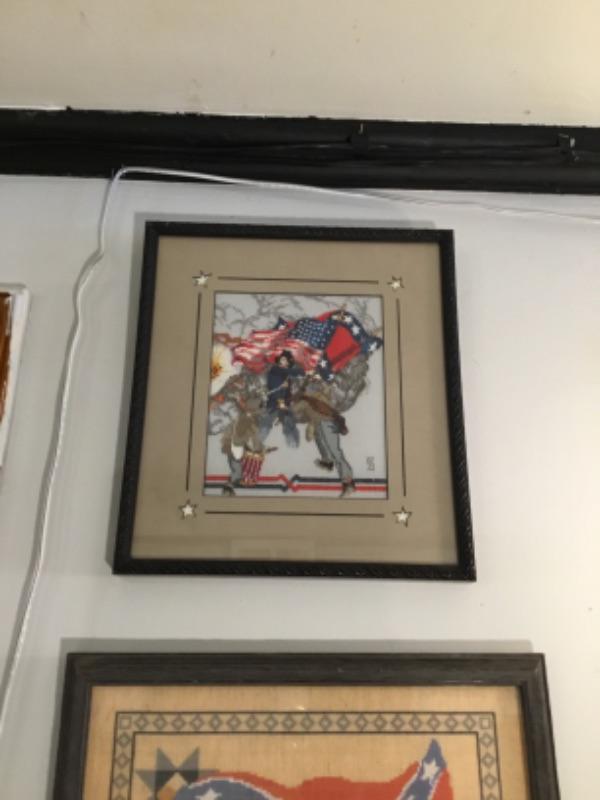 Civil war themed framed cross stitch by VCS (3) lot 1589