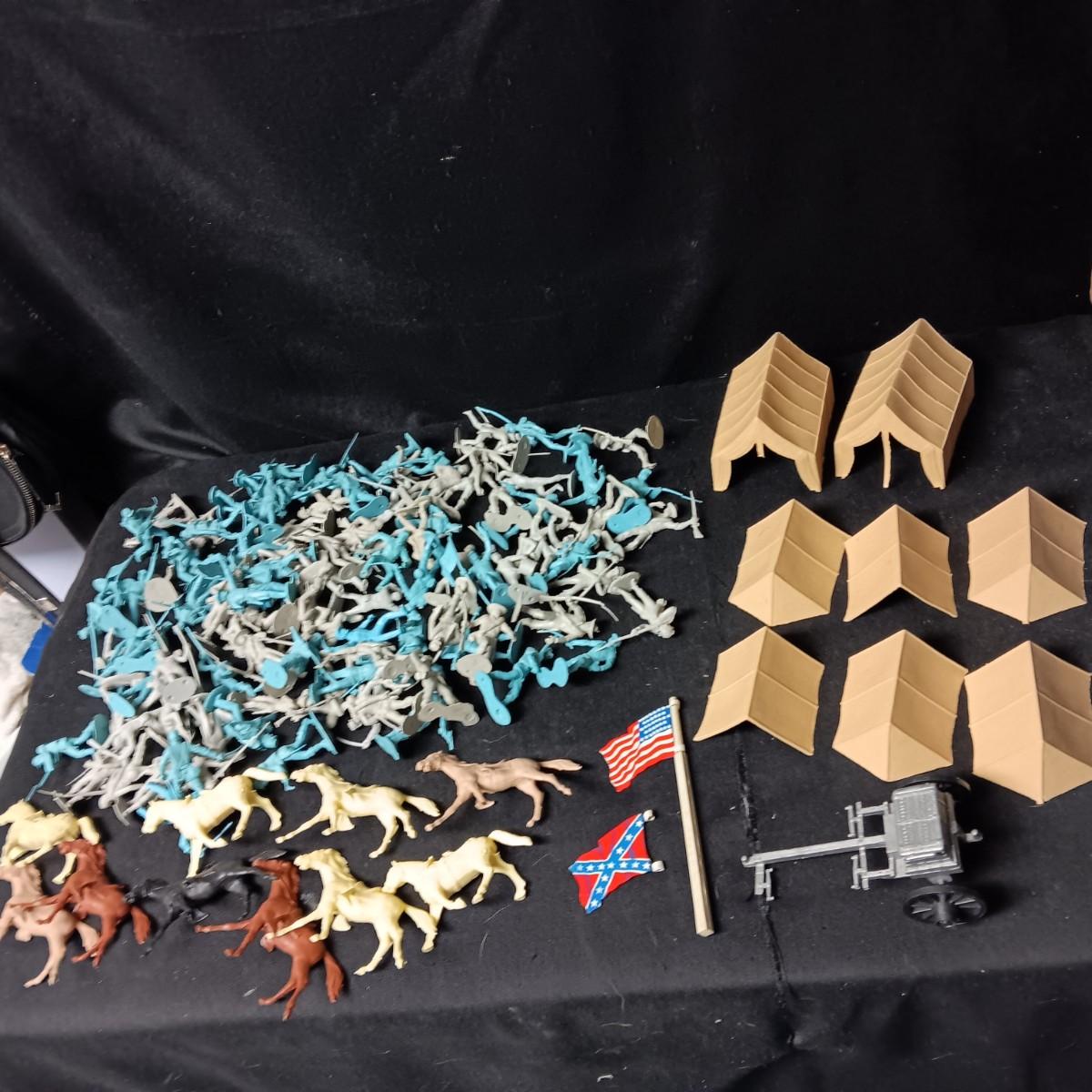 CIVIL WAR TOY SOLDIERS WITH HORSES AND TENTS