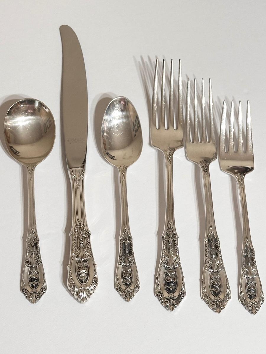 STERLING ~ Wallace Silver ~ "Rose Point" ~ (1934) ~ Gorgeous ~ 60 Piece Set