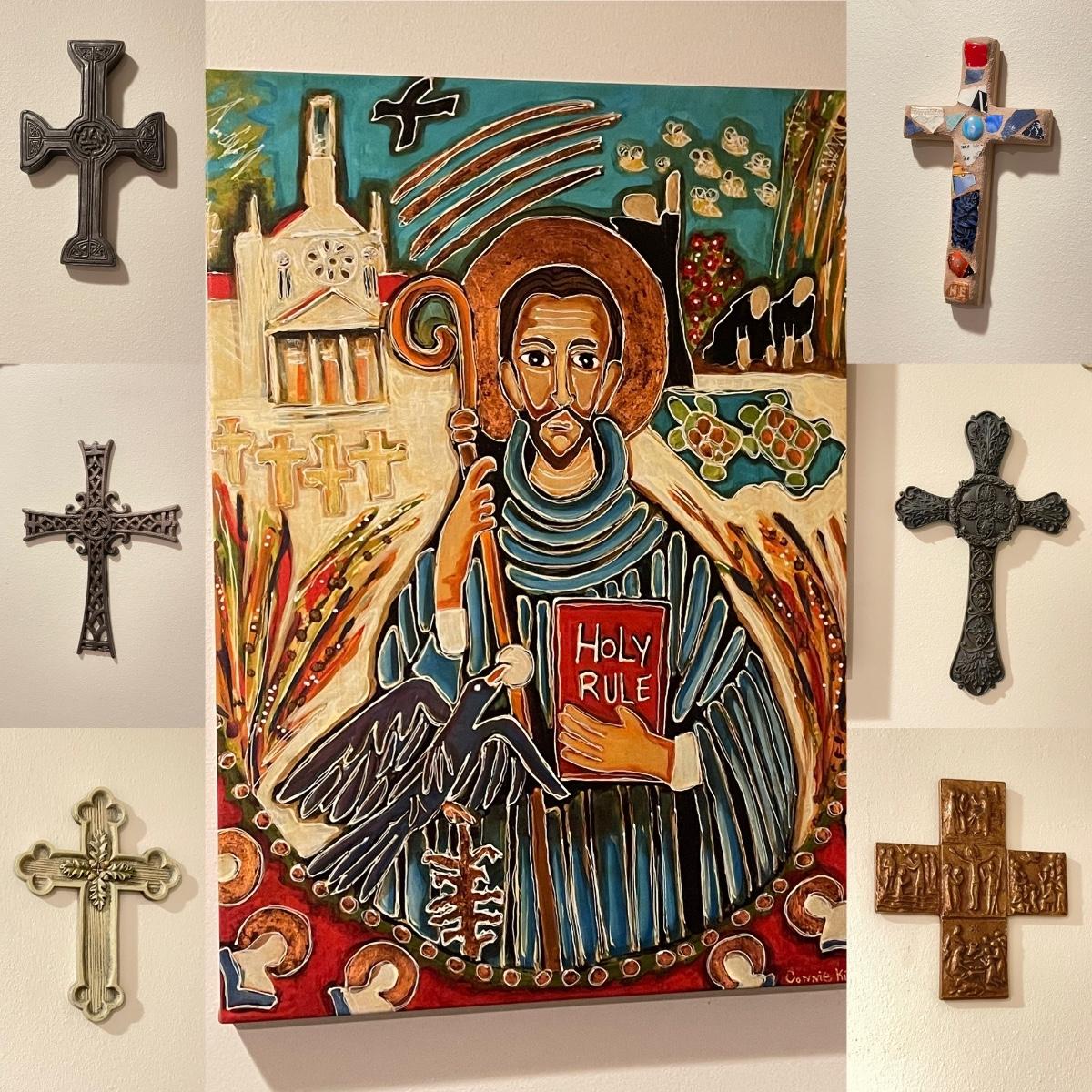 CONNIE KITTOK~ St. Benedict Giclee & 6 Assorted Decorative Crosses
