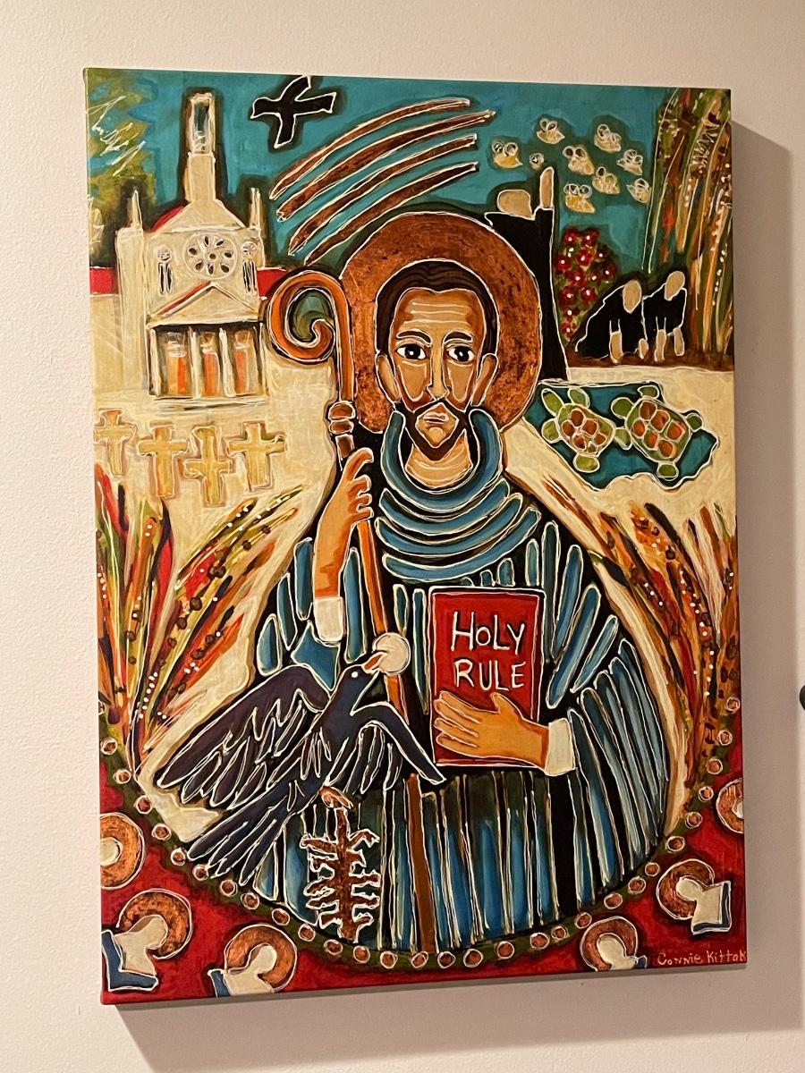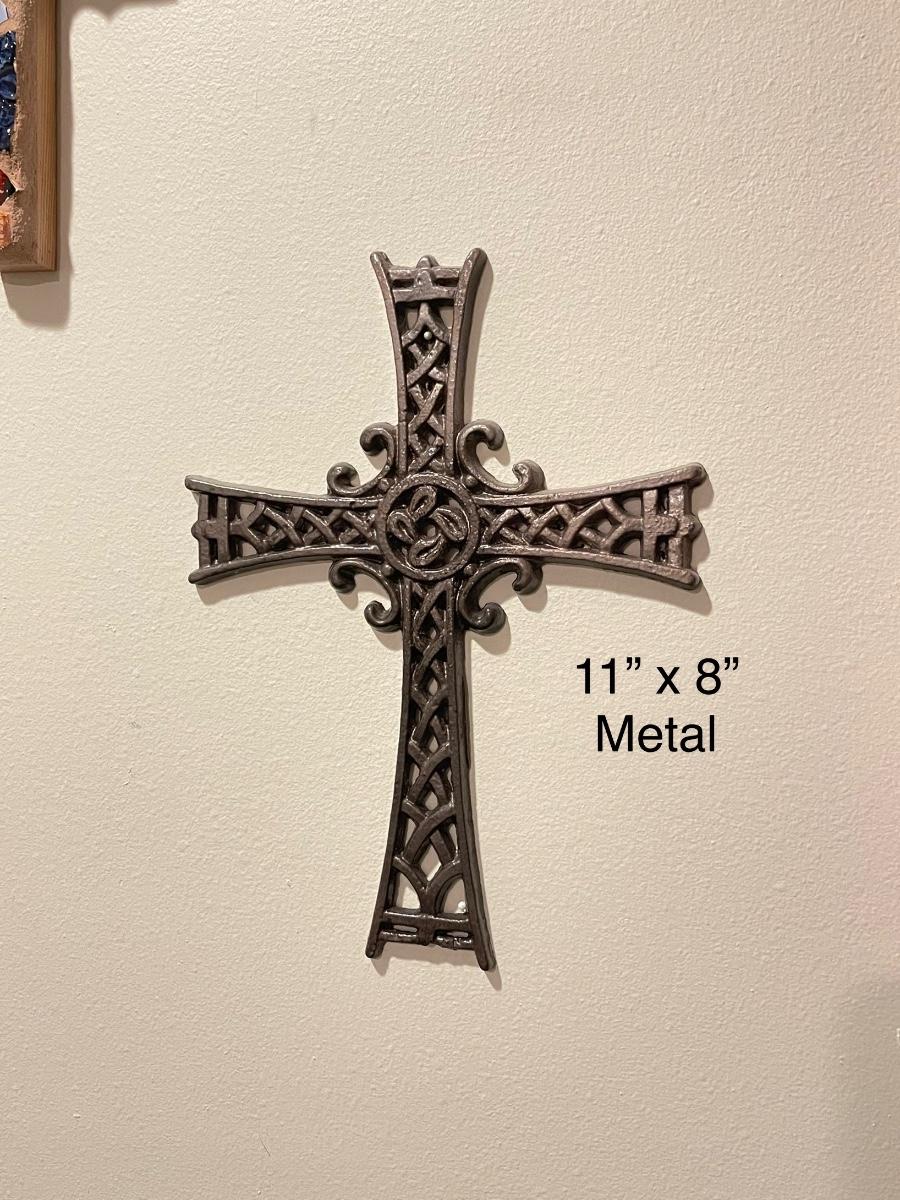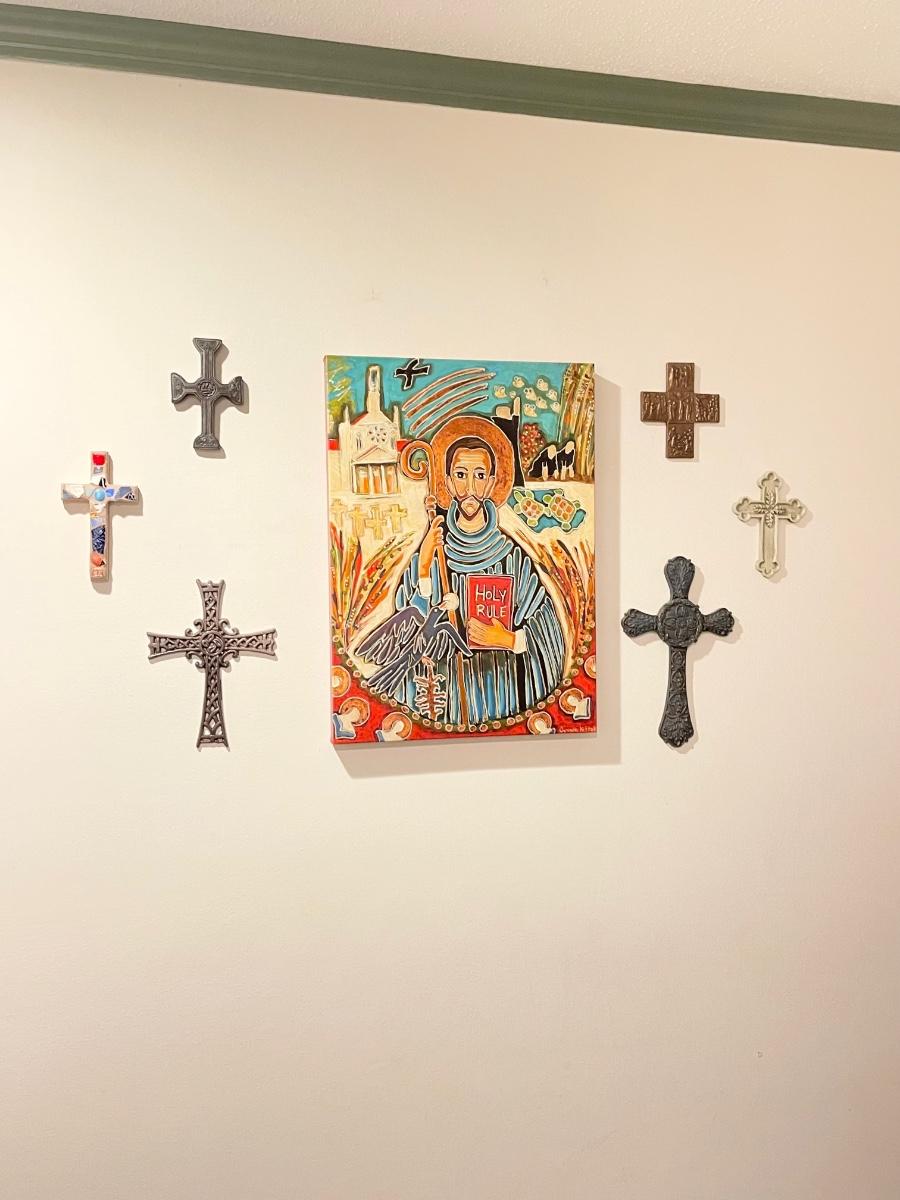 24' x 18" Gallery Wrap Giclee of St Benedict by Connie Kittok & 6 Misc Crosses (See photos for sizes & Material)