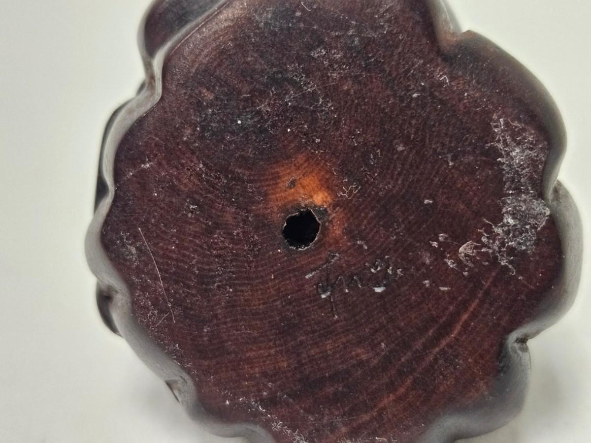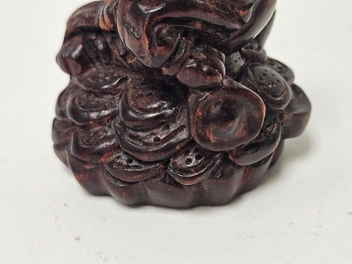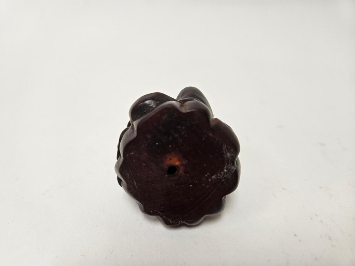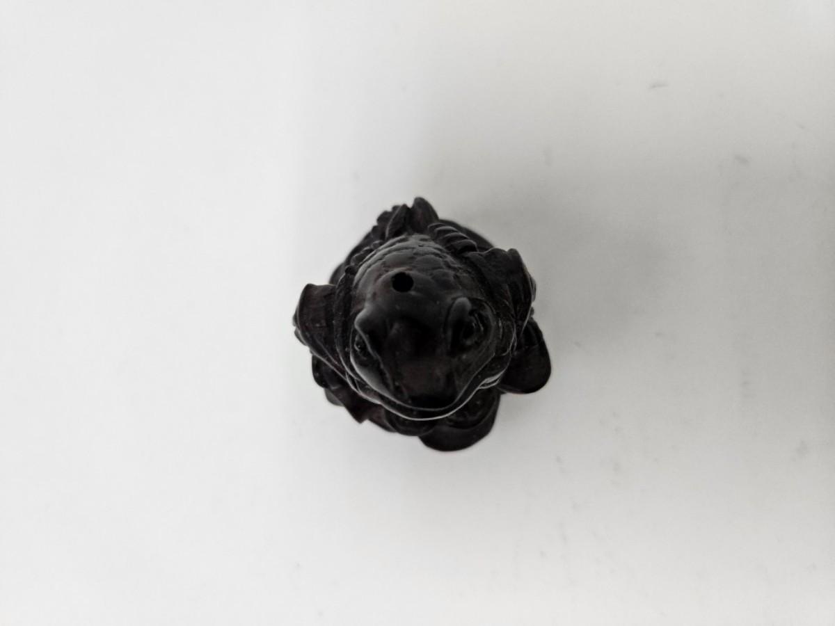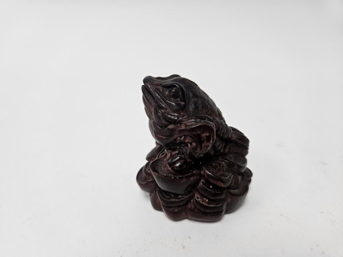 CKEG02. Vintage Carved Japanese Netsuke Bead, Luck Frog Wood, Signed