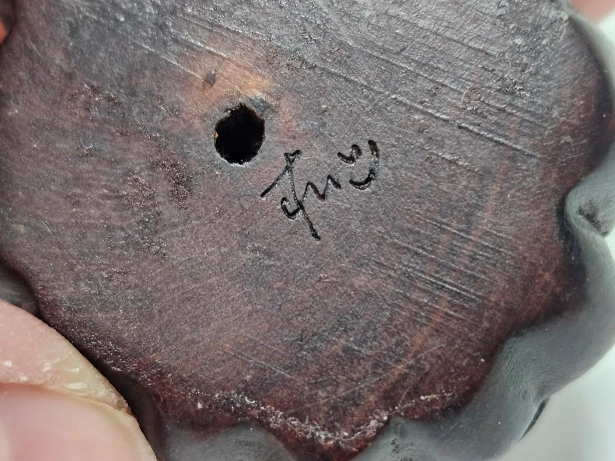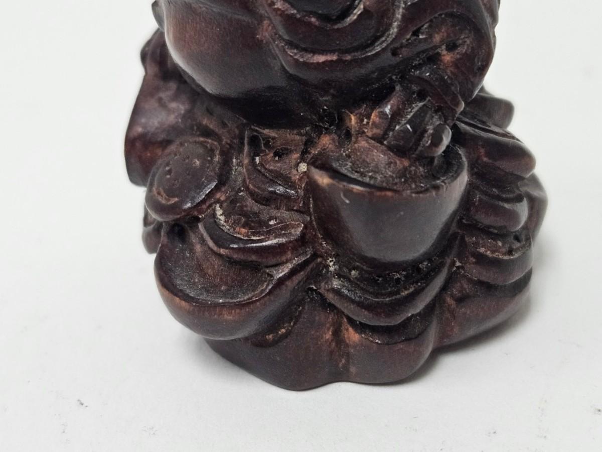 Vintage Carved Japanese Netsuke Bead, Luck Frog Wood, Signed