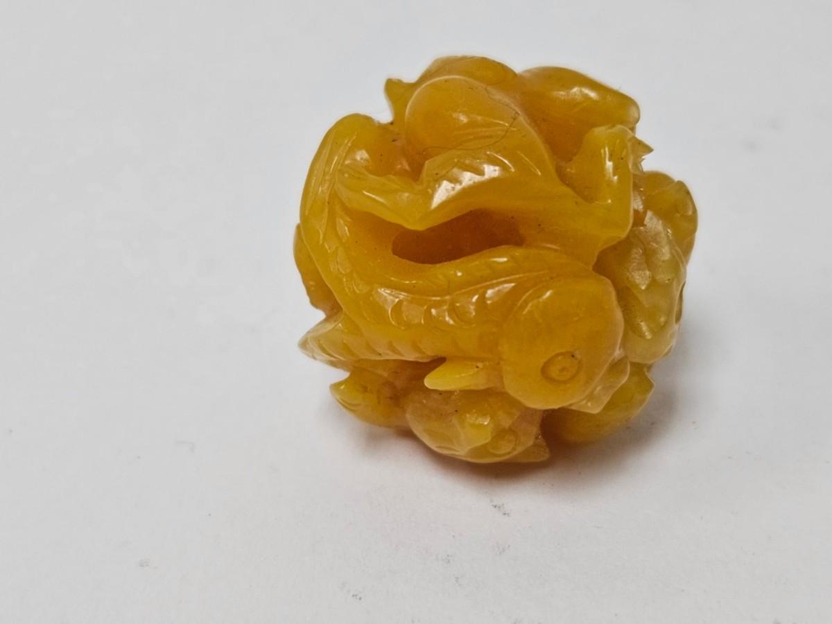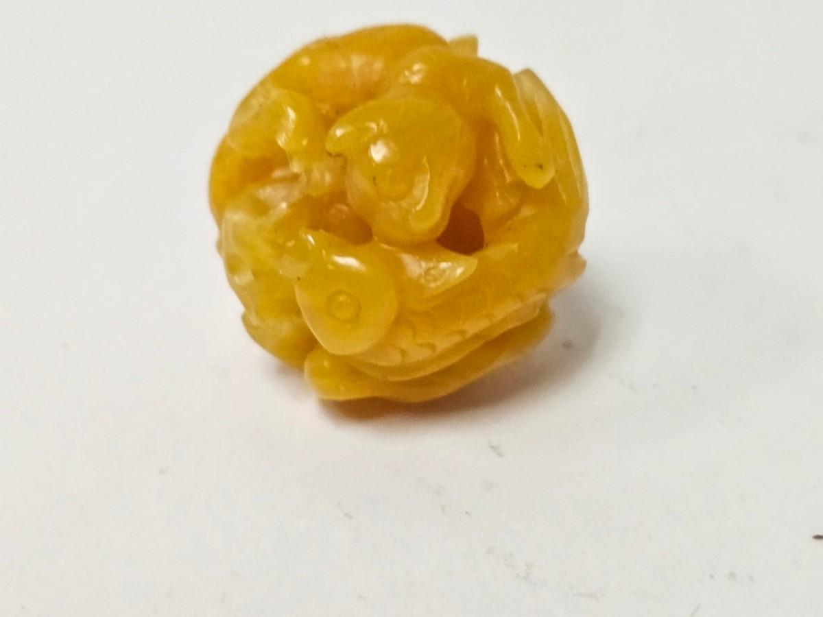 Vintage Carved Japanese Netsuke Bead, Koi Fish, Possible Amber