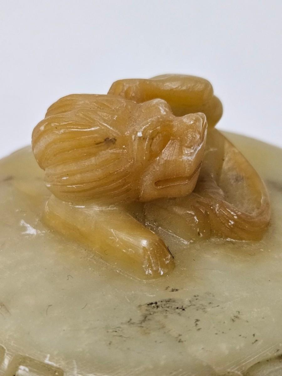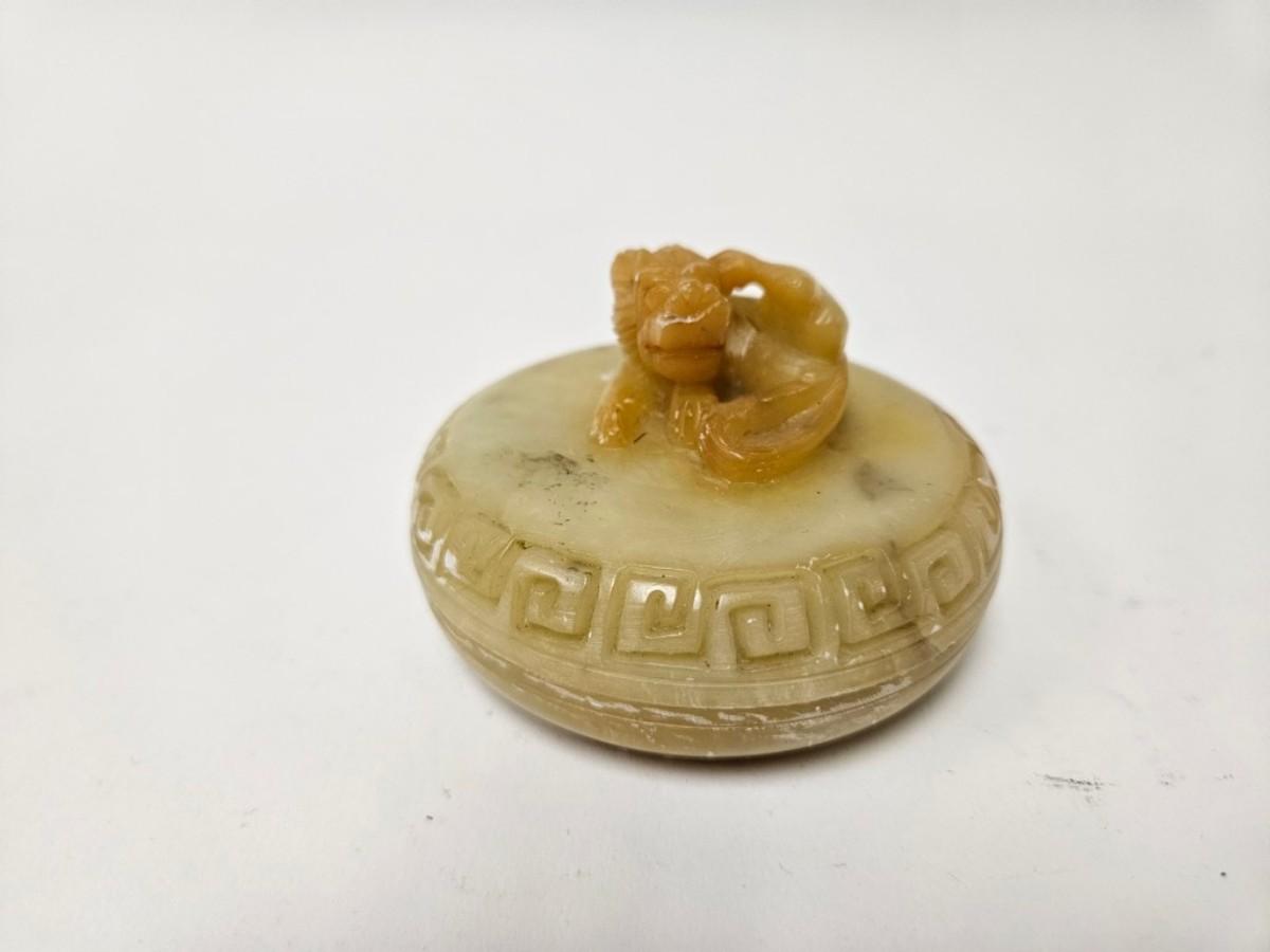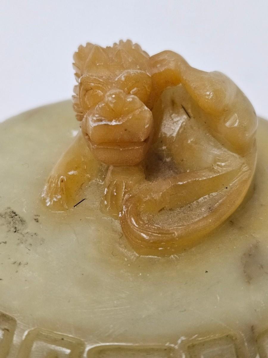 CKEG11. Vintage Chinese Soapstone Foo Dog Lidded Trinket Box