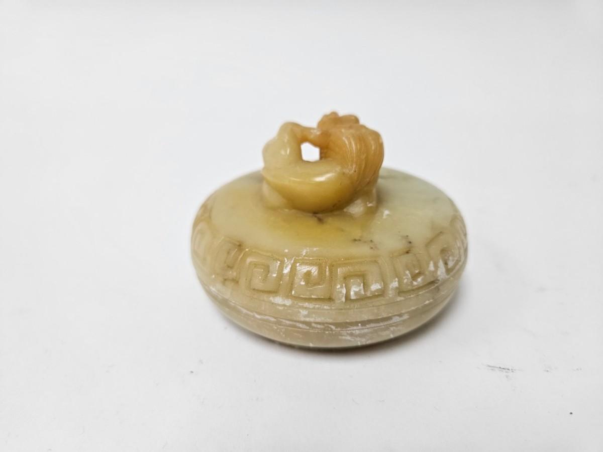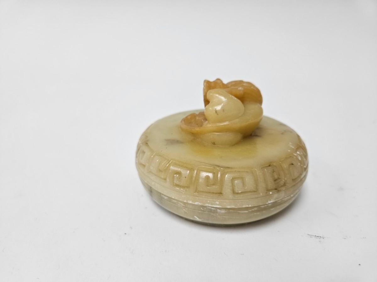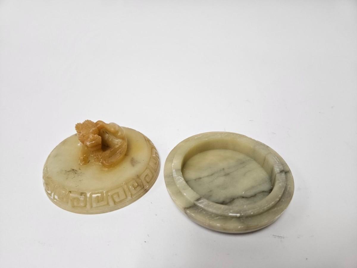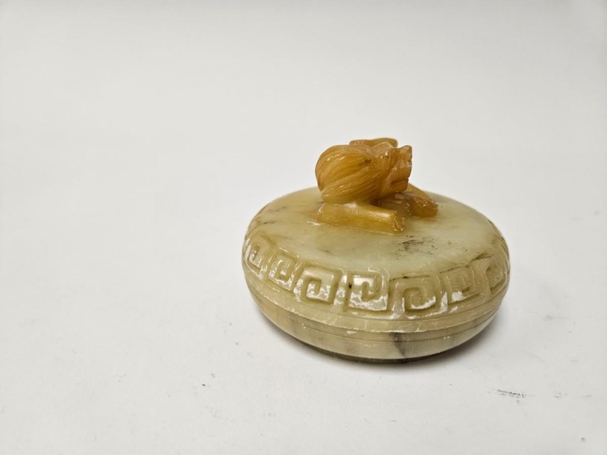 CKEG11. Vintage Chinese Soapstone Foo Dog Lidded Trinket Box