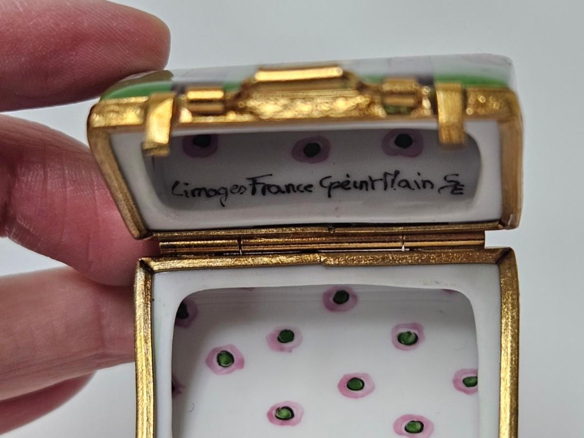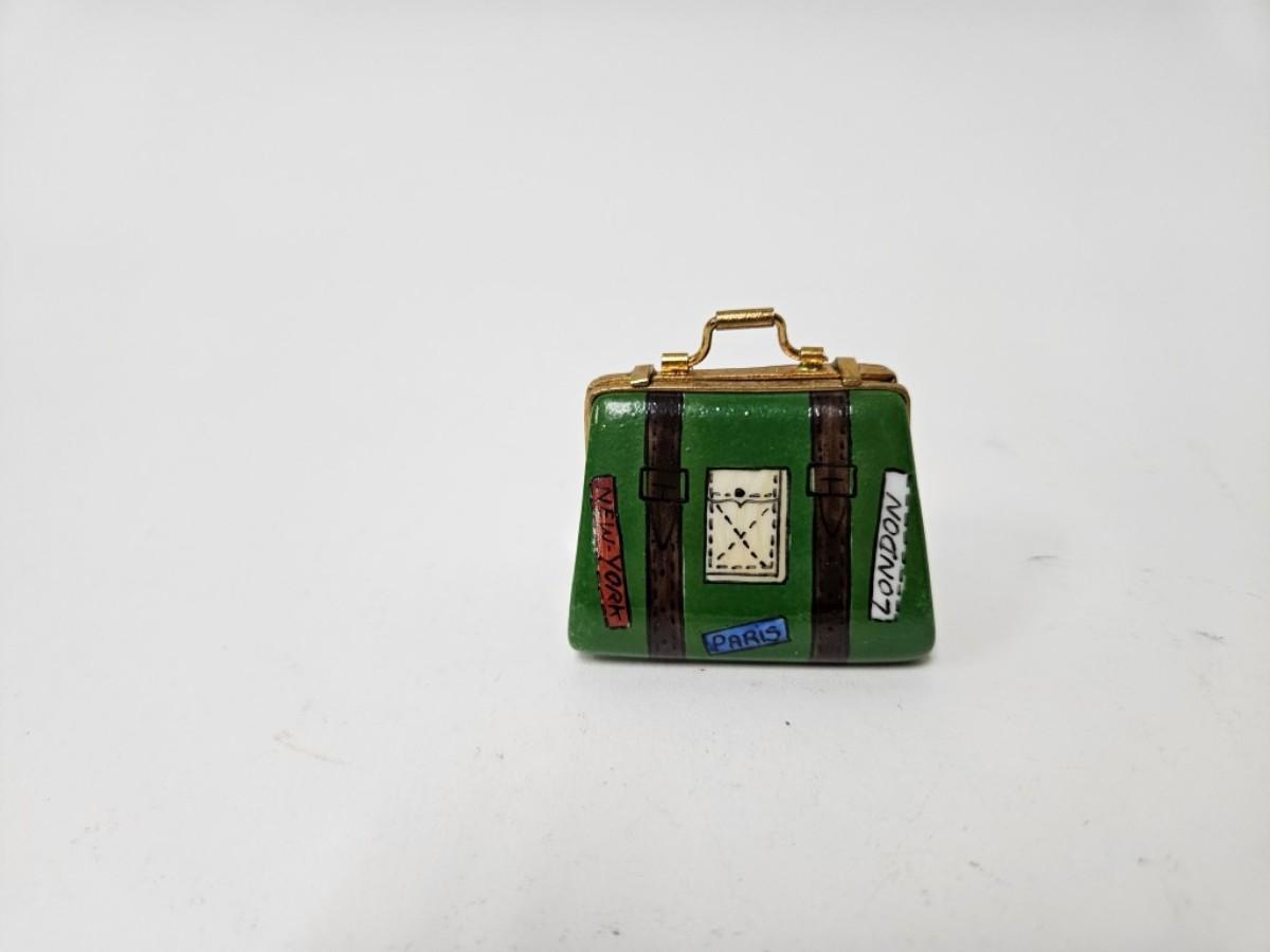 CKEG13. Limoges Porcelain Hand-Painted Mini Trinket Box, Luggage
