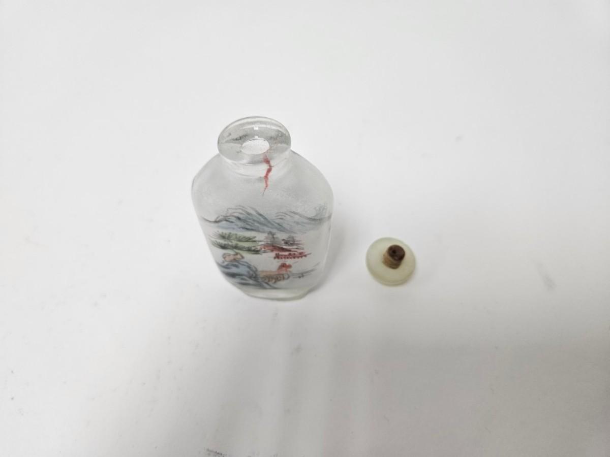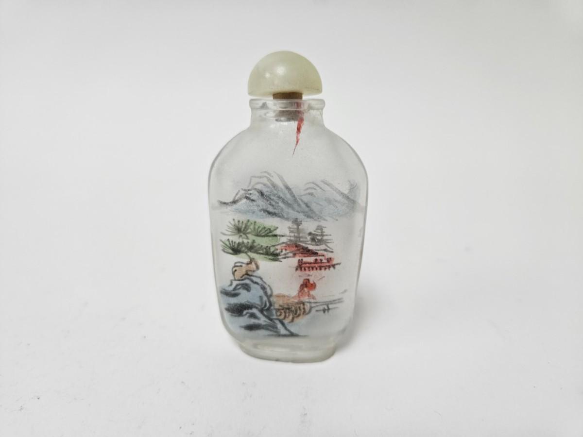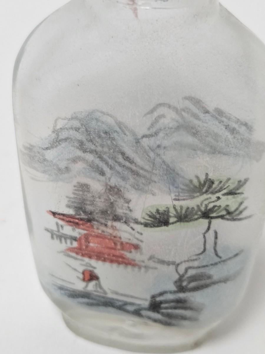 Hand-Painted Reverse Glass Chinese Snuff Bottle, Mountain Scene