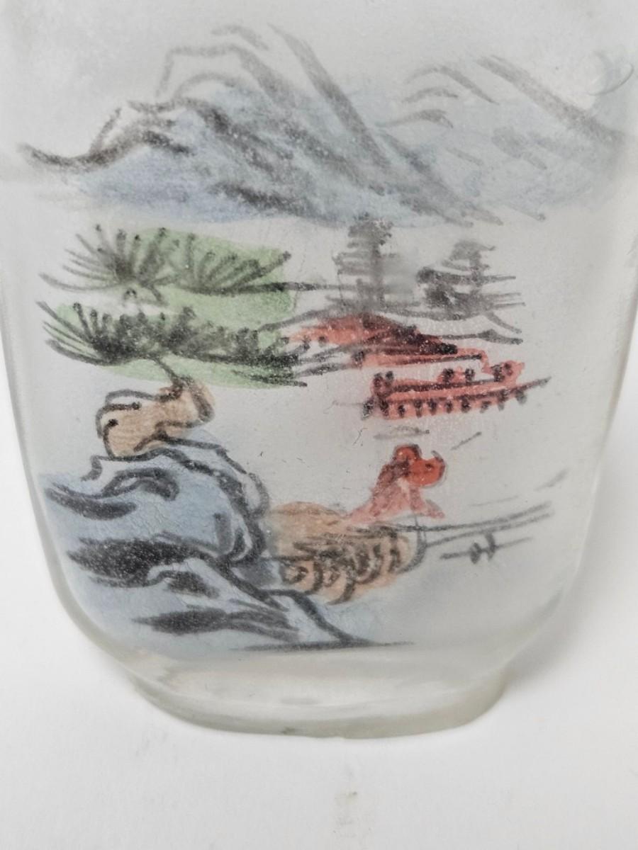CKEG15. Hand-Painted Reverse Glass Chinese Snuff Bottle, Mountain Scene