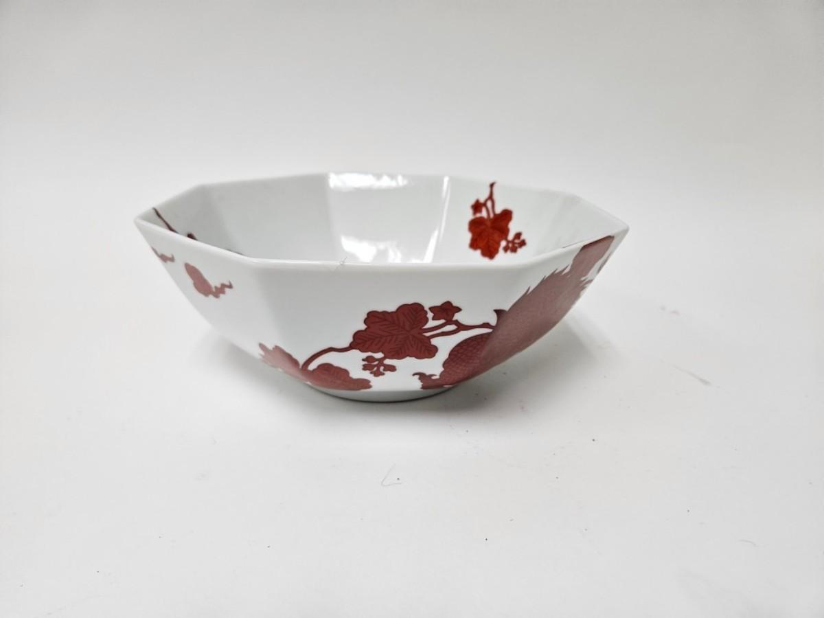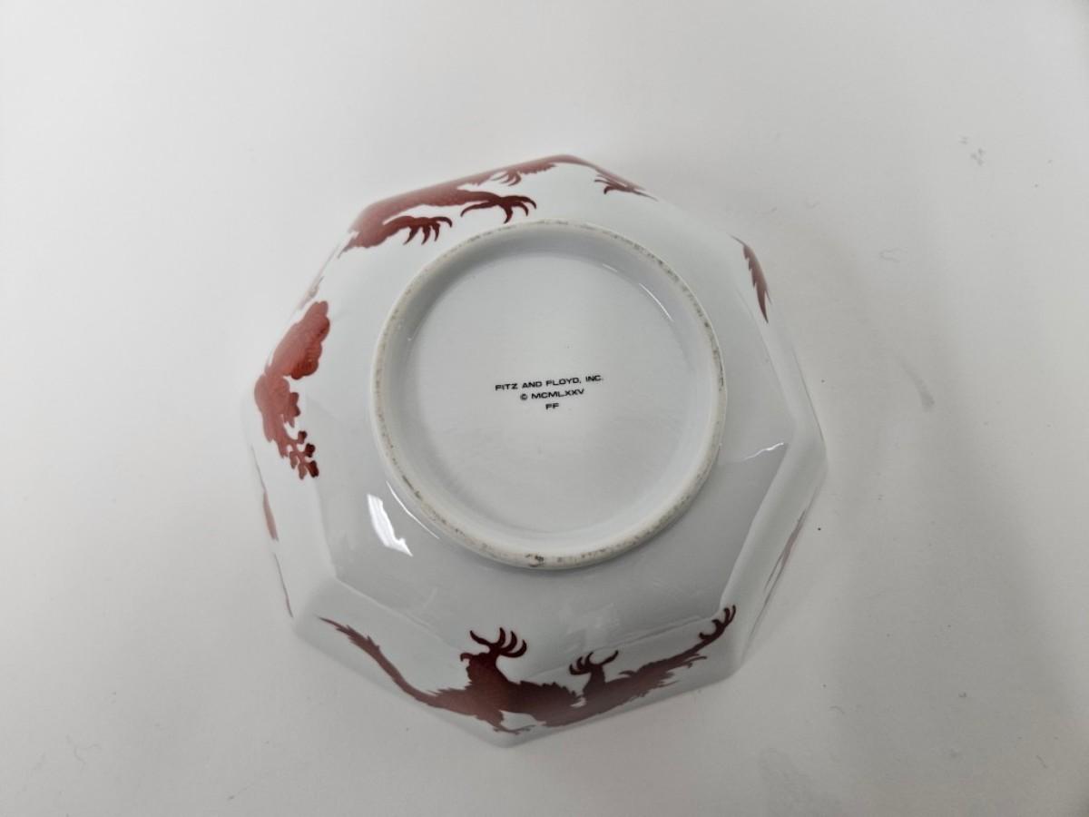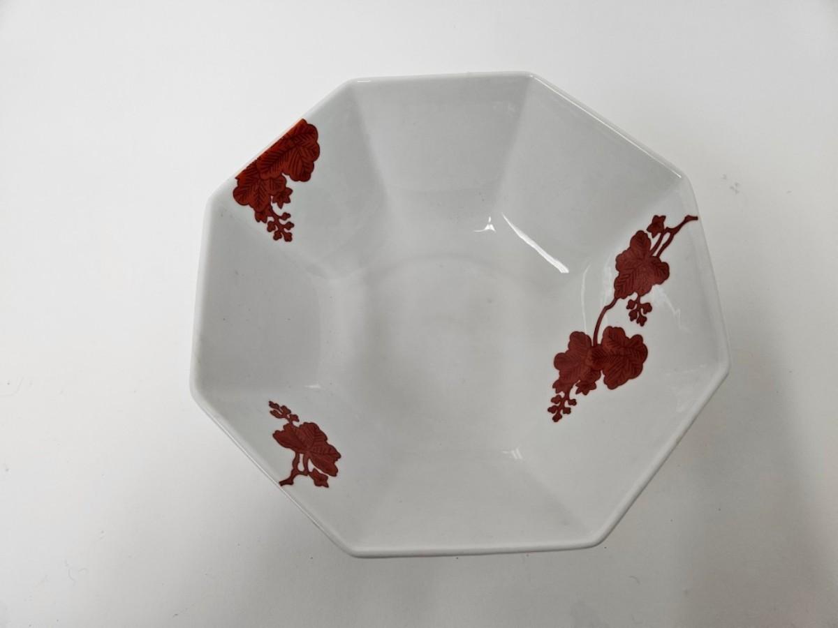 CKEG20. Fitz & Floyd Octagonal Bowl, Red & White