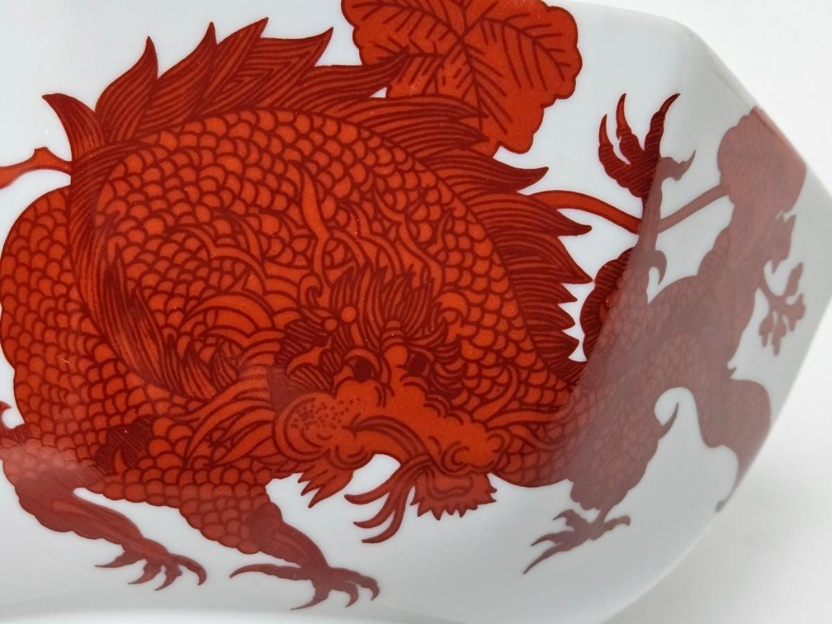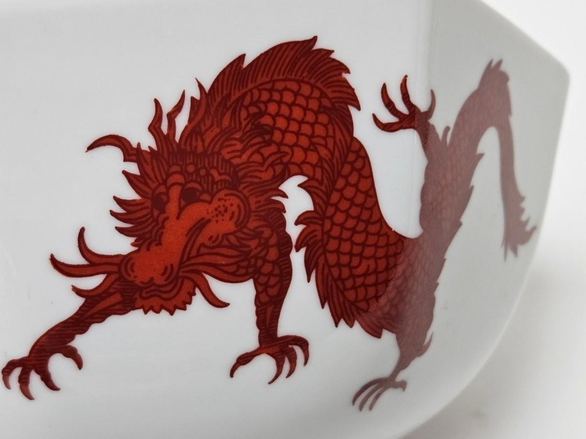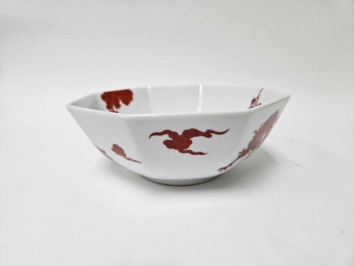 CKEG20. Fitz & Floyd Octagonal Bowl, Red & White