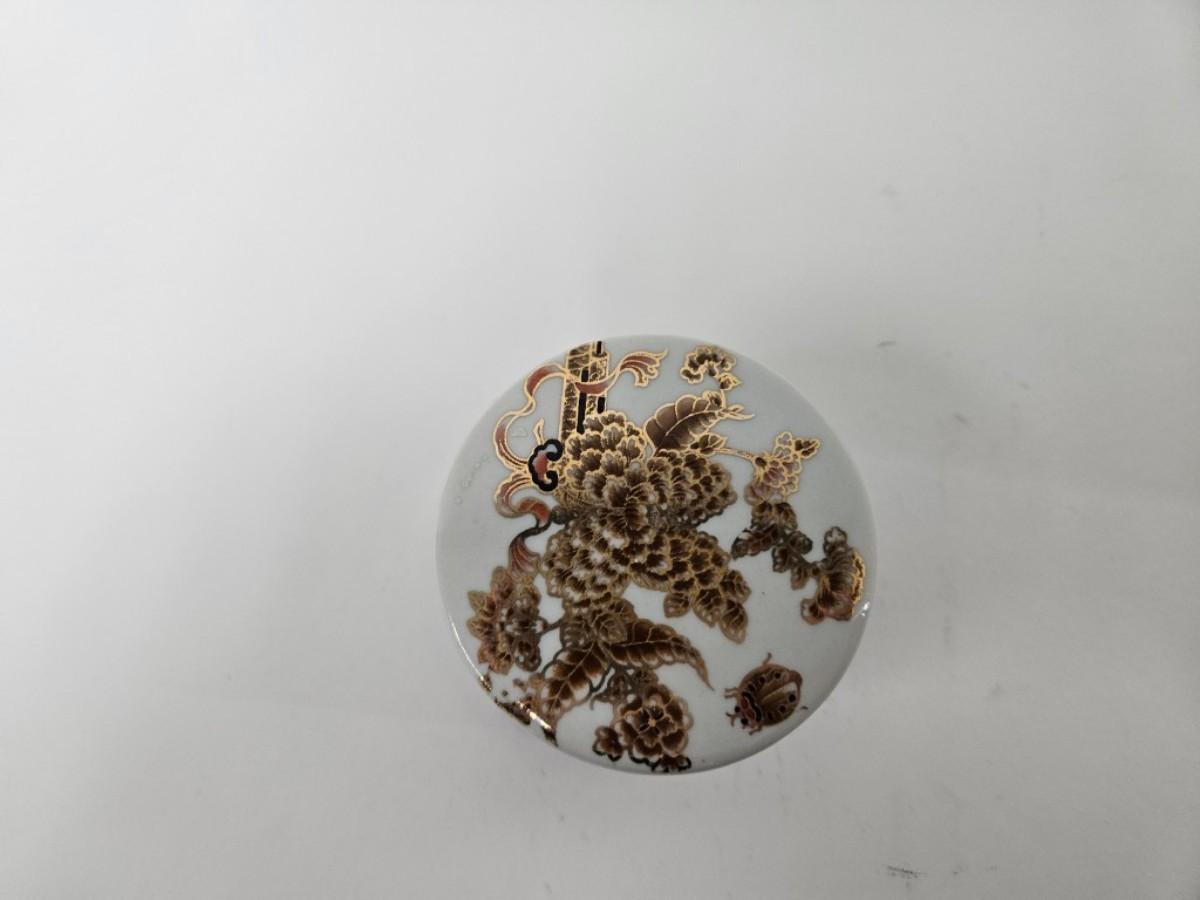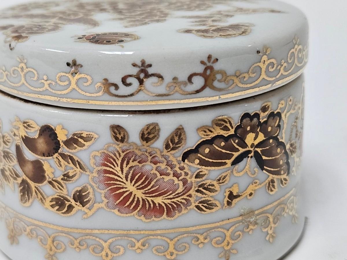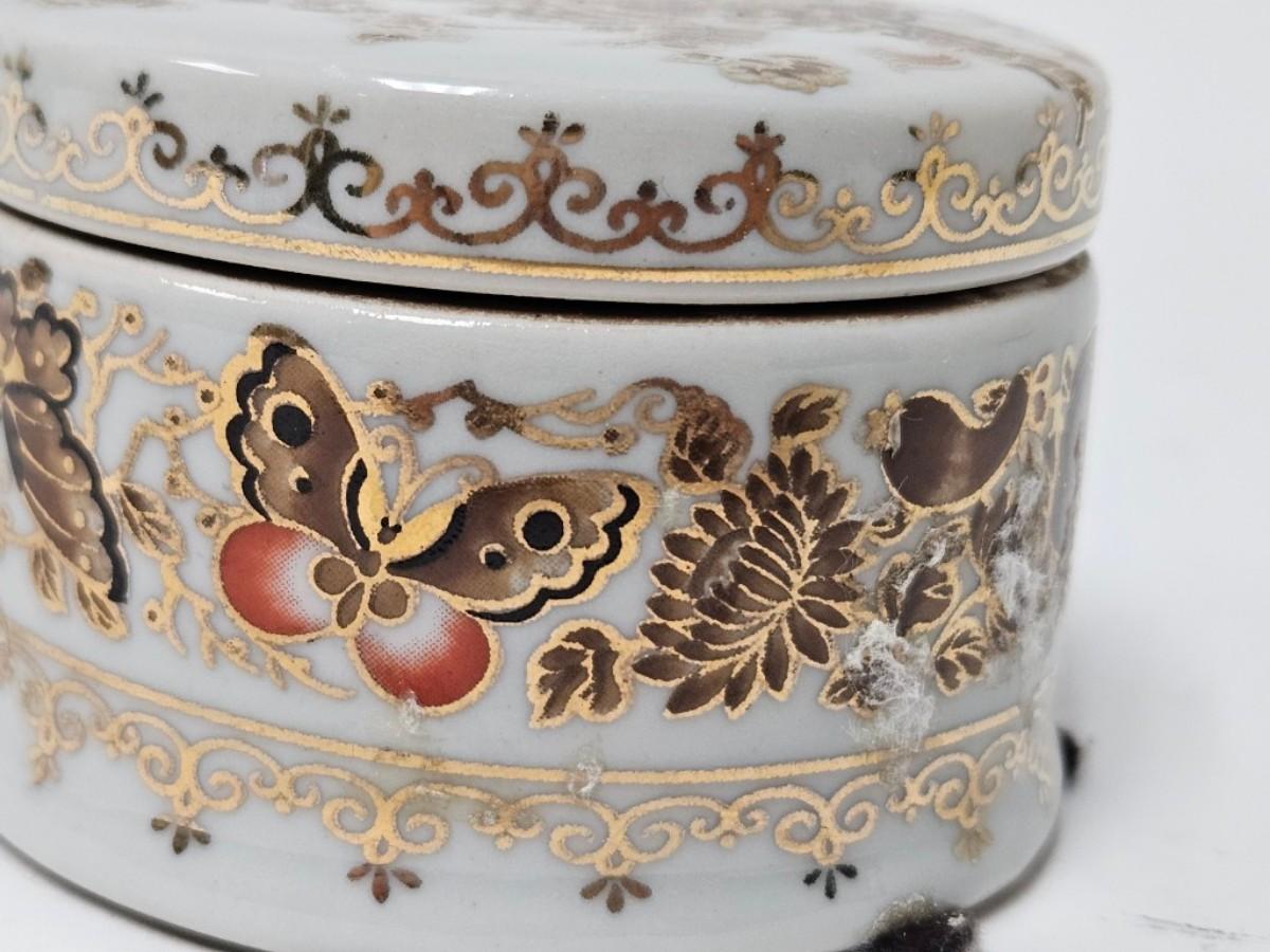 CKEG33. Ceramic Round Jar, Flowers & Butterflies, Gilt Accents