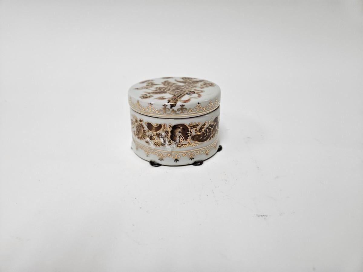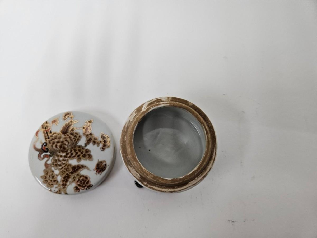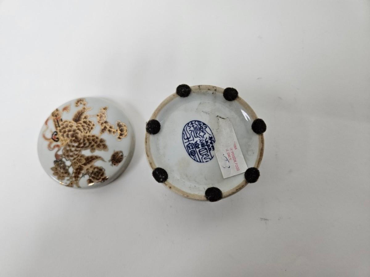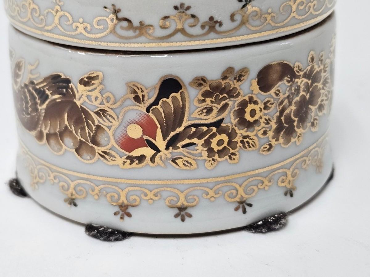 CKEG33. Ceramic Round Jar, Flowers & Butterflies, Gilt Accents