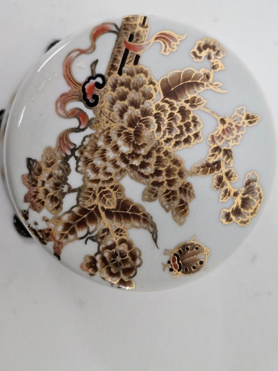 Ceramic Round Jar, Flowers & Butterflies, Gilt Accents